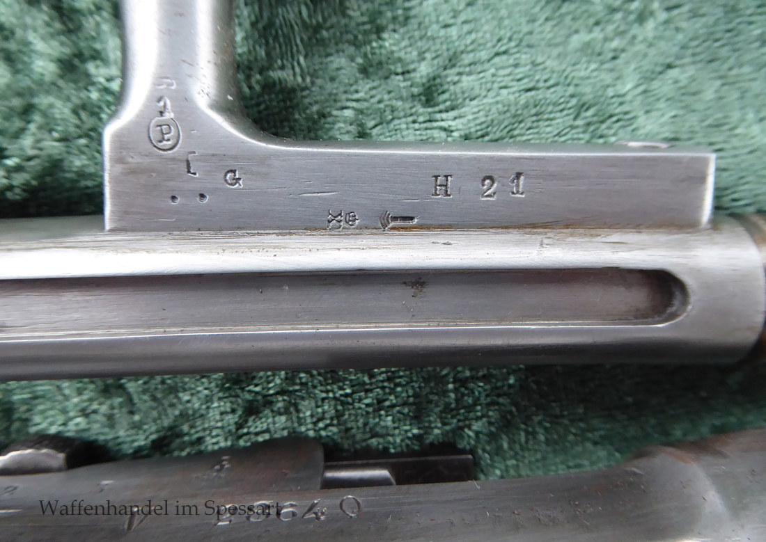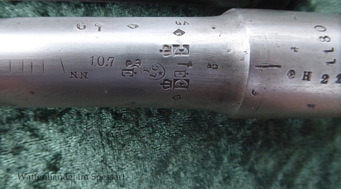 Das Gewehr hat einen heute noch gültigen belgischen Beschuß auf der Unterseite (siehe Foto). Laufunterseite und Verschluß mit dem Peron (Lütticher Vorbeschuß) und auf der Laufunterseite der Beschußstempel ELG im Oval.