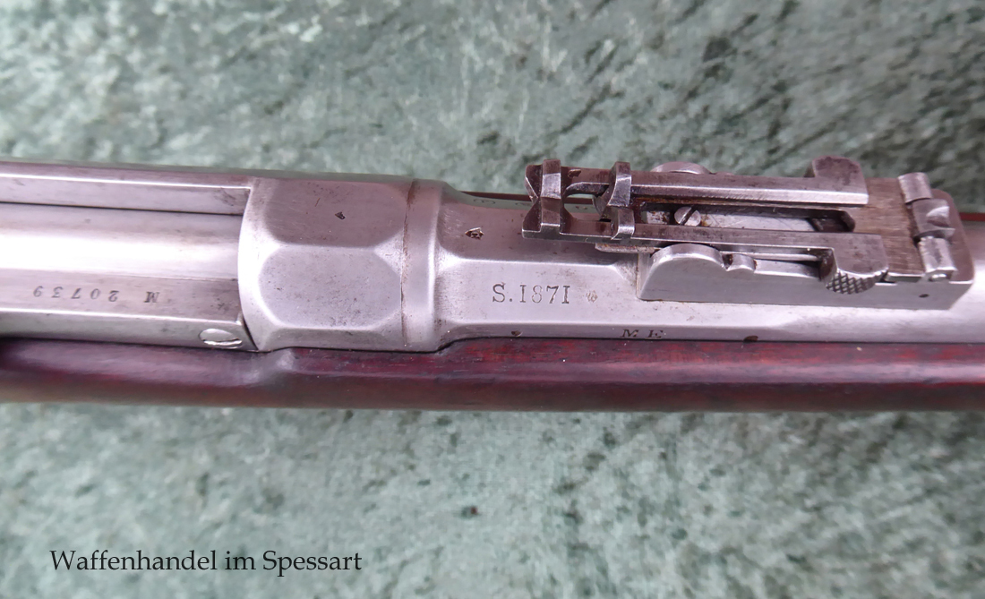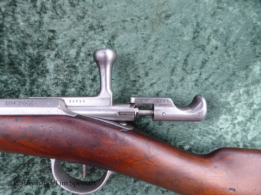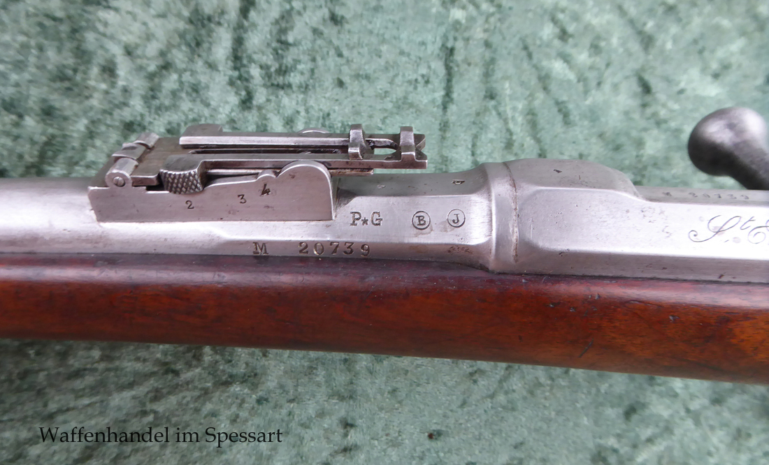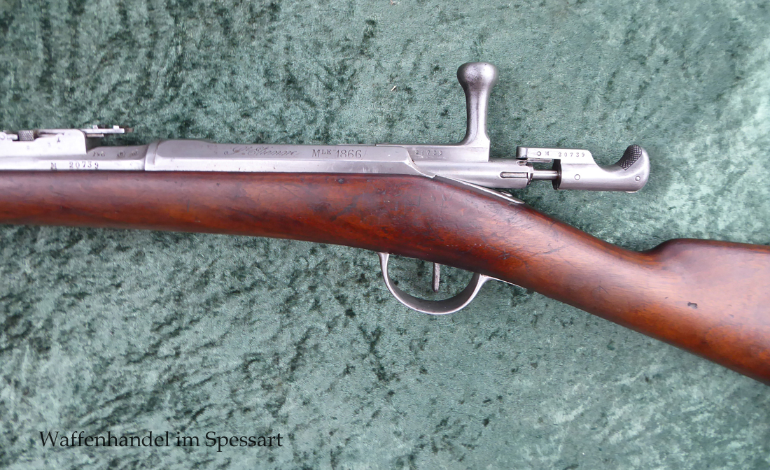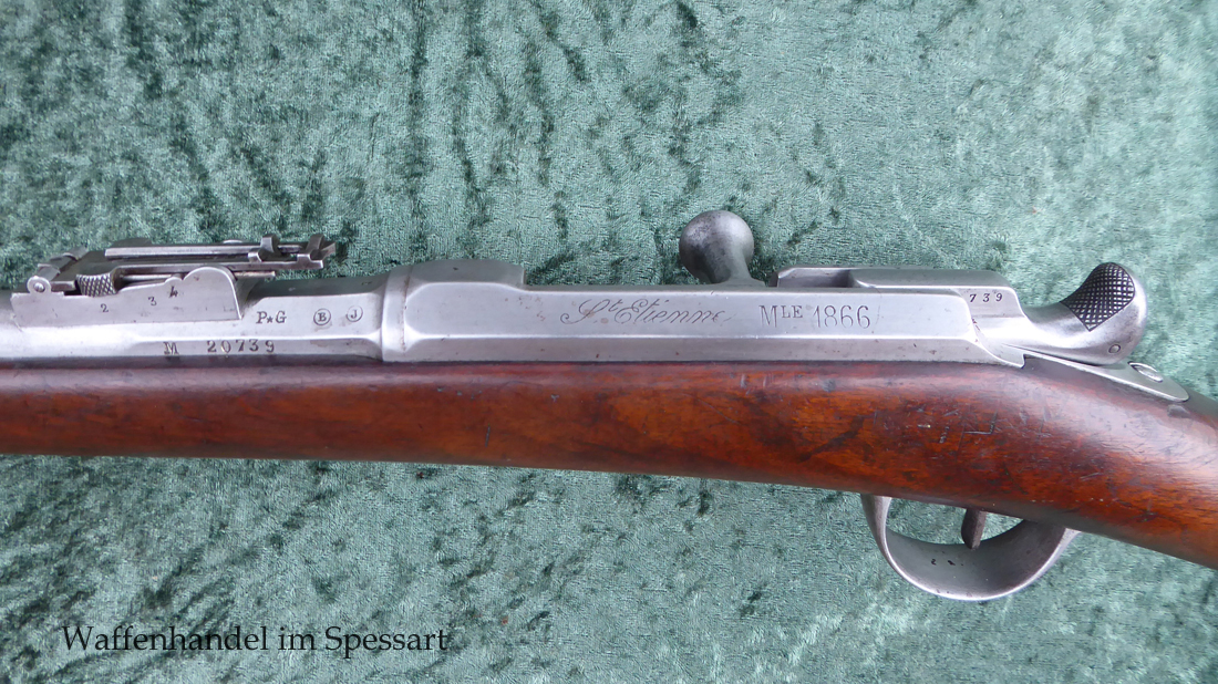 Hergestellt in St. Etienne 1871. Kal.11mm Chassepot Zündnadelpatrone. Baujahr 1871. Ser.Nr. M20739. Nummerngleich. Sogar der Entladestock hat die gleiche Nummer!. Das Laufinnere hat scharfkantige Felder und Züge und ist blank. Alle Stempel im Metall sind tief und deutlich. Der schöne Schaft mit sehr gut erhaltenen tiefen Abnahmen! Die Dichtung ist original. Die Nadel original. Mit dem langen Visier, das vornehmlich an Jägereinheiten ausgegeben wurde. Gut funktionierendes Schloß mit strammer Feder. Voll funktionsfähiges Gewehr. Keine verdrehten oder beschädigten Schrauben. Das Gewehr befindet sich in orig. Pflegezustand.