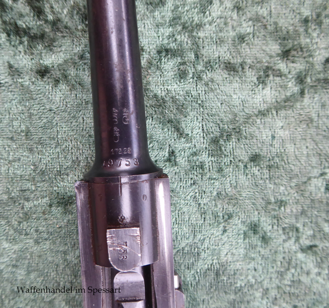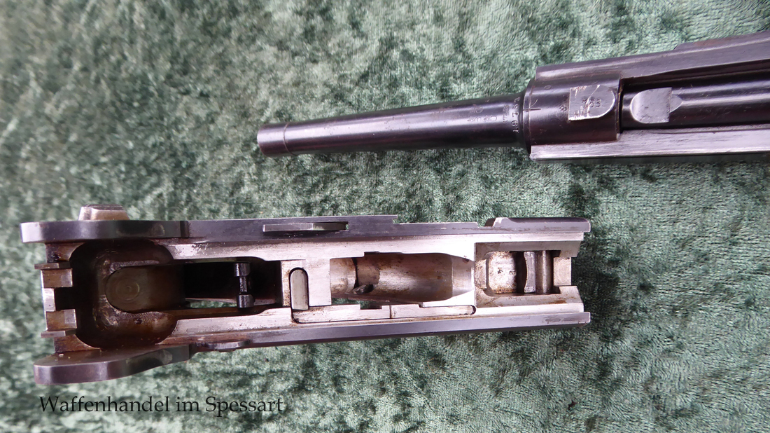 Bei dieser P00 ist der Kammerfang, der Sicherungshebel, der Schlagbolzen und das Magazin nicht nummeriert!