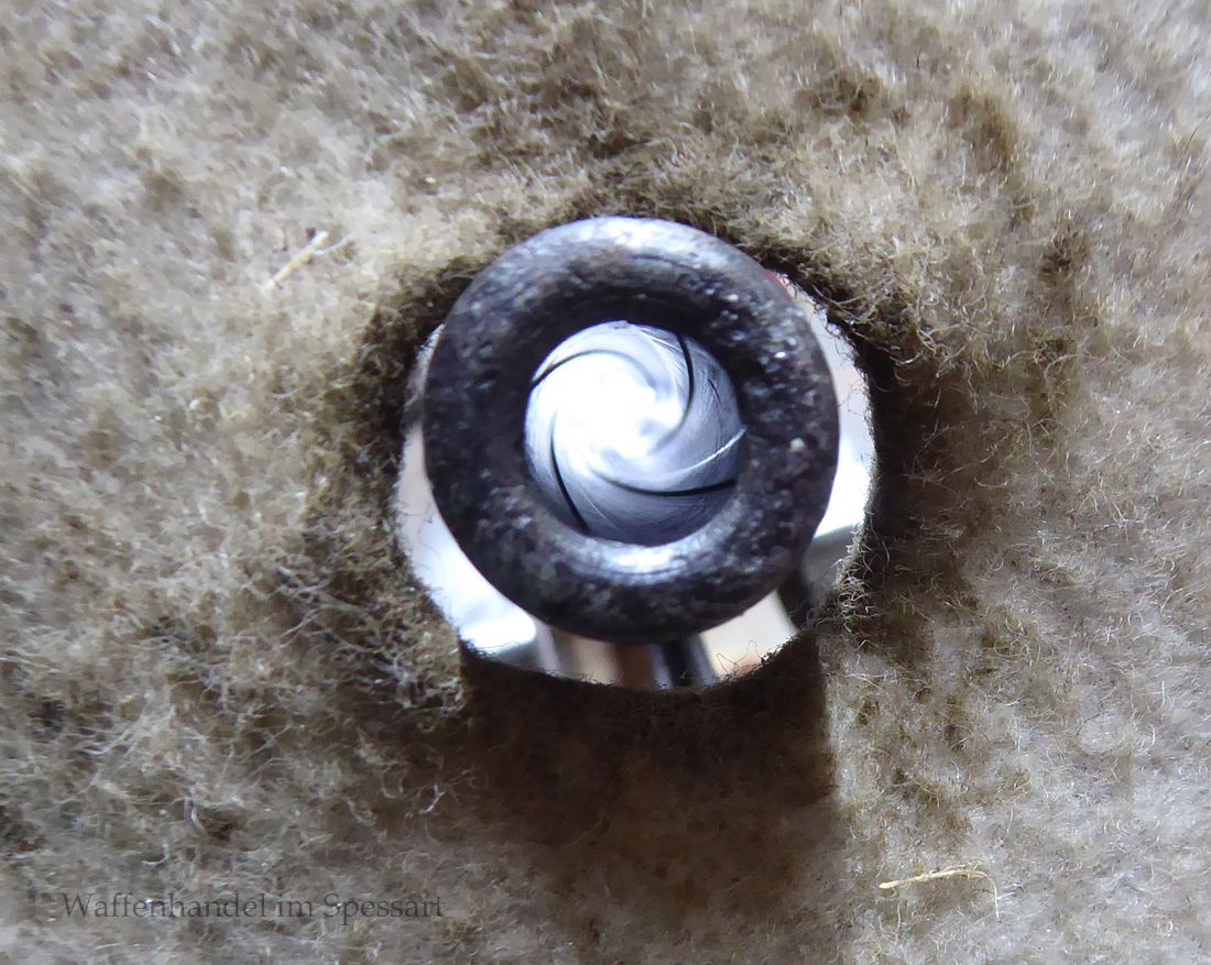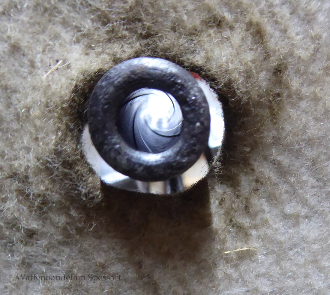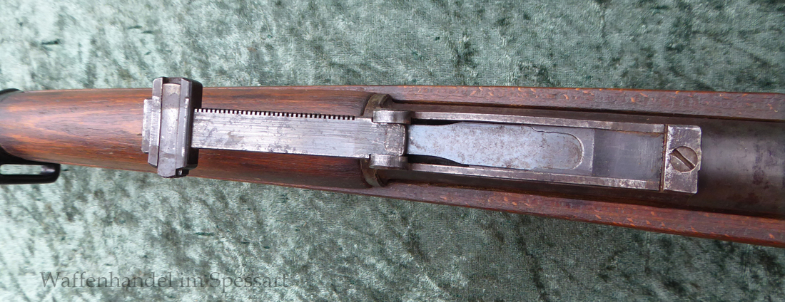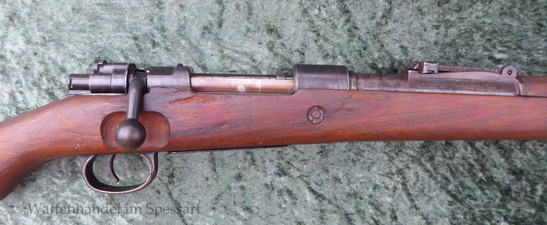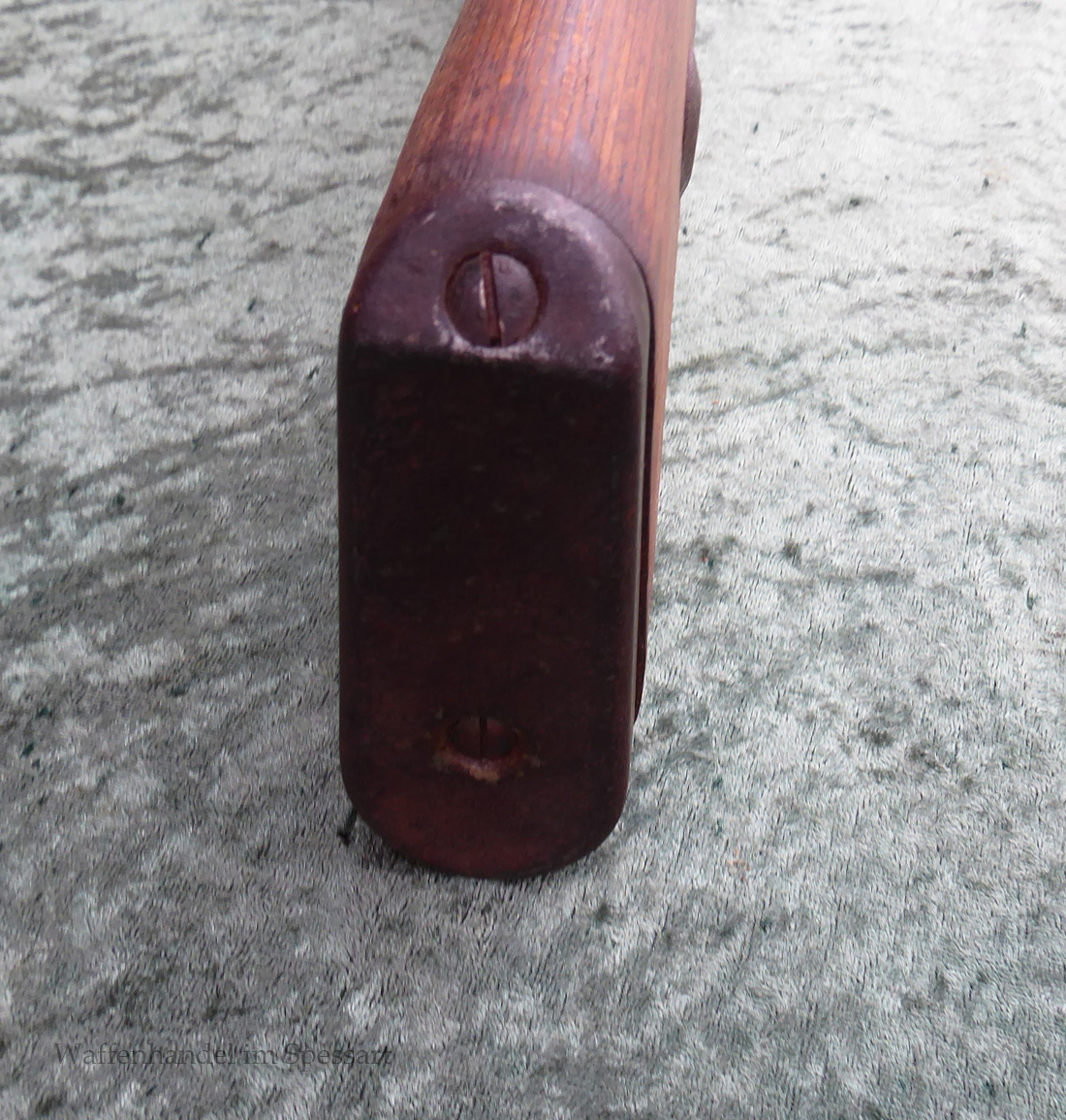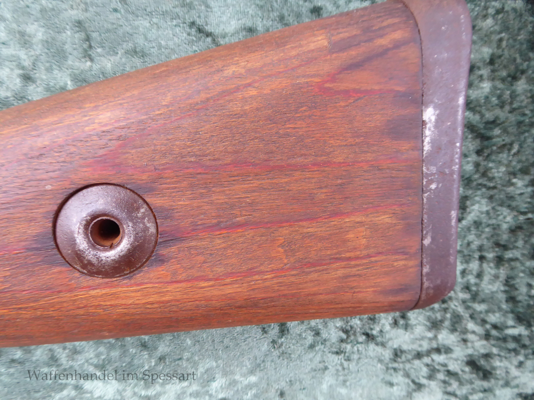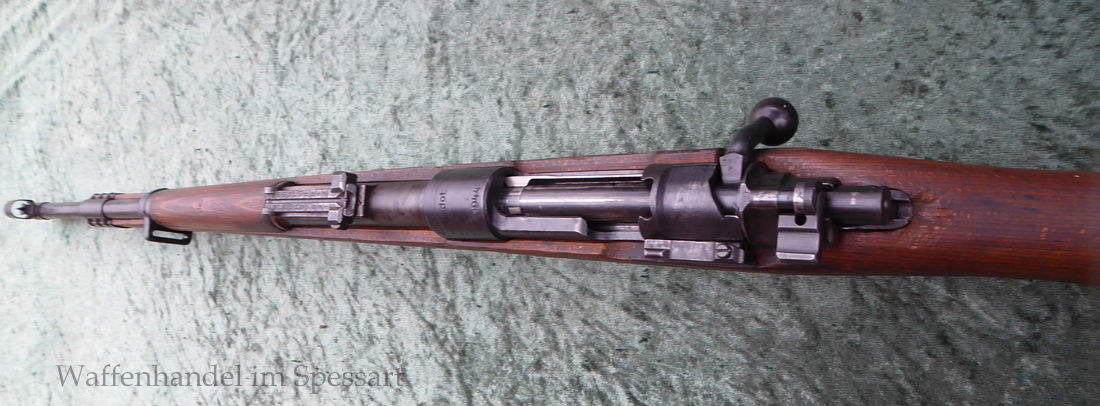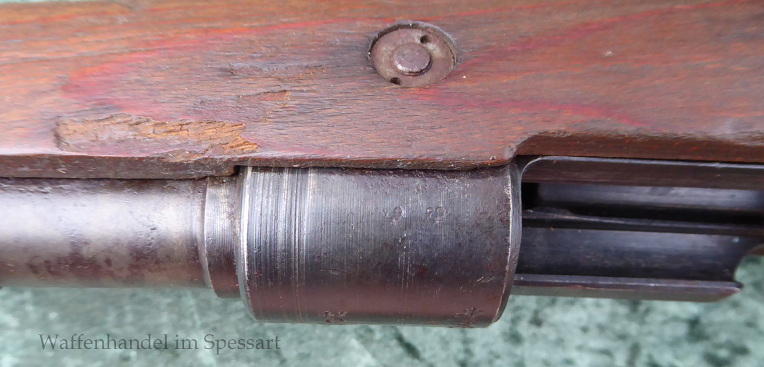 Kal.8x57is. Ser.Nr. 21079a. Nummerngleich. Das Laufinnere hat sehr gute scharfkantige Felder und Züge und ist fast blank (geringe Anhaftungen im Mündungsbereich). Gute orig. Brünierung mit geringen Alterspuren! Guter Schichtholzschaft, der innen nummeriert ist.