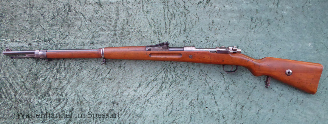Hersteller Gewehrfabrik Amberg im Jahr 1917. Kal.8x57is, Ser.Nr.2680f. Nummerngleich inkl. Reinigungsstab. Das Laufinnere hat scharfkantige Felder und Züge. Es ist blank! Die originale Brünierung ist sehr gut erhalten. Das blanke Hülsensystem und der verschluß hat eine hauch von Patina, kein Rost! Schöner heller Schaft mit geringen Gebrauchsspuren. Die Abnahmestempel im Schaft sind tief und sehr gut erhalten. EWB Schaftstempel für Einwohnerwehr Bayern.