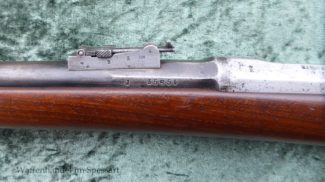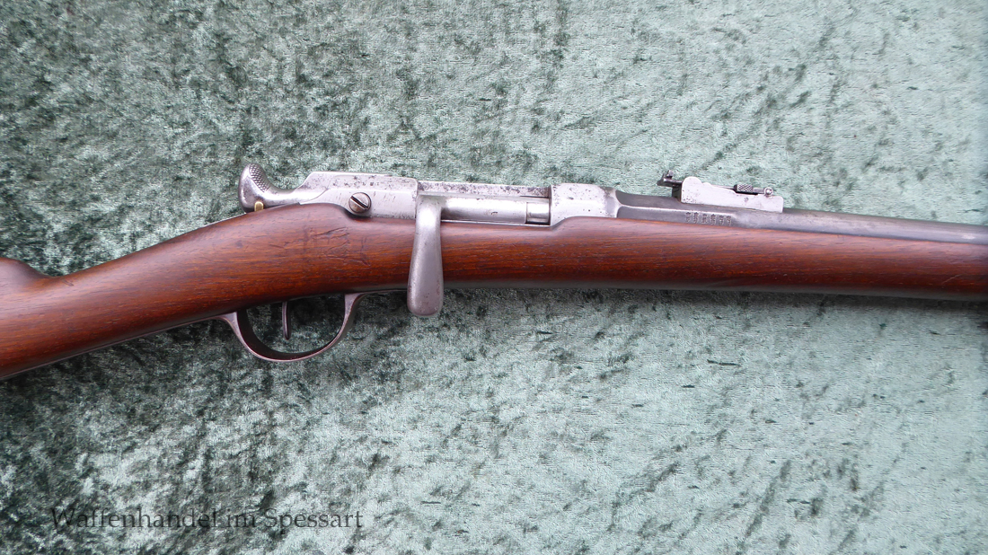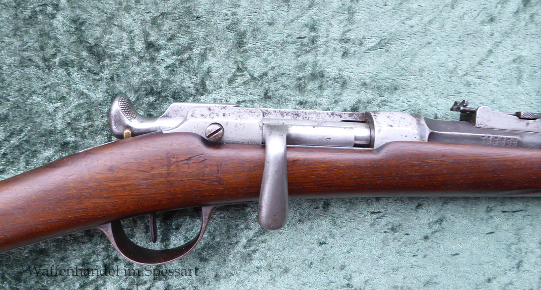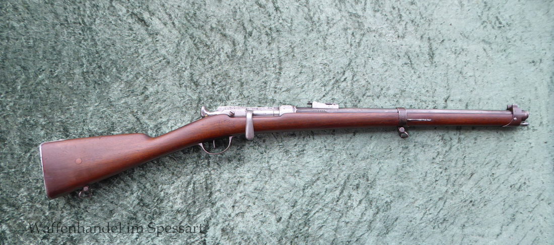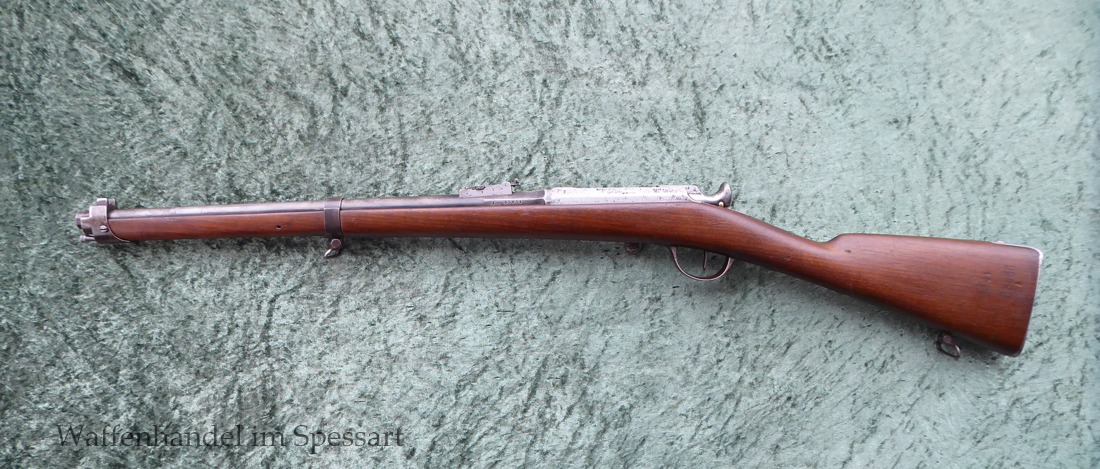 Da das deutsche Kaiserreich den erst später produzierten Karabiner 71 noch nicht zur Verfügung hatte, wurden Chassepotkarabiner auf Patrone 71 geändert. Ändeungen am Verschluß, System, Korn mit Schutzbacken etc. Natürlich mit den preußischen Abnahmestepel versehen!