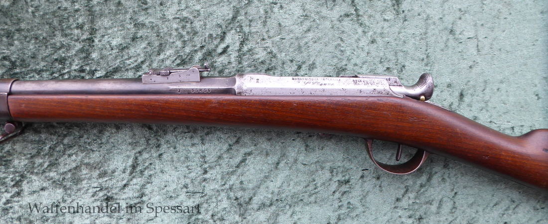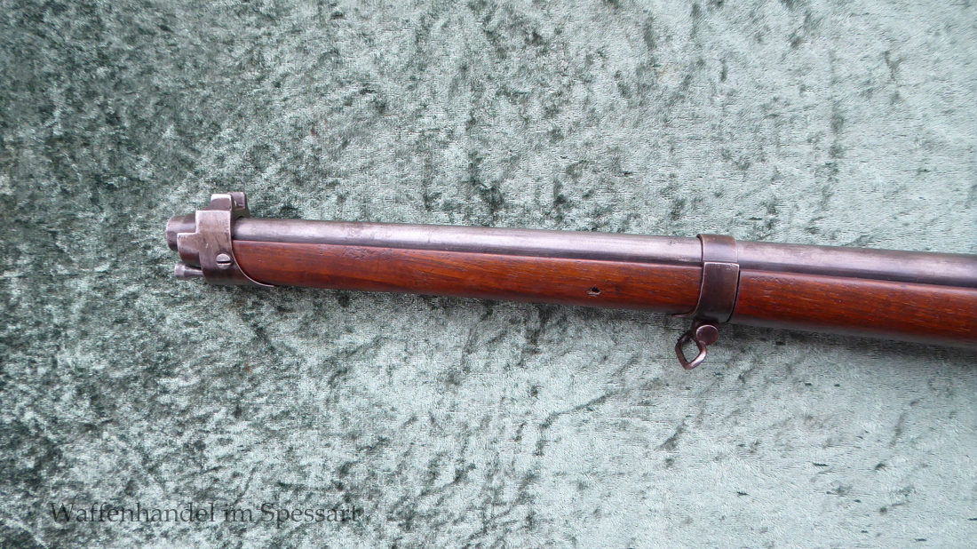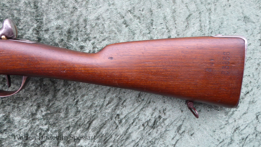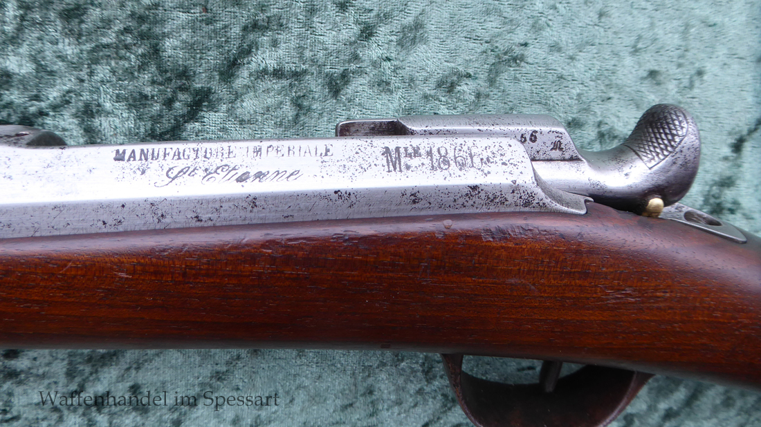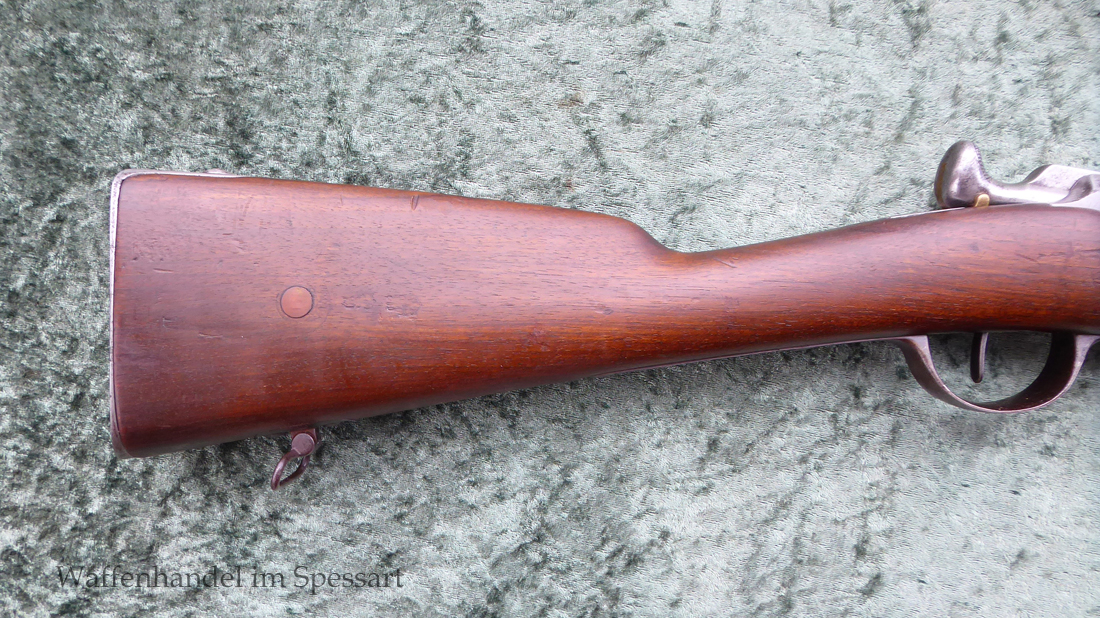Da das deutsche Kaiserreich den erst später produzierten Karabiner 71 noch nicht zur Verfügung hatte, wurden Chassepotkarabiner auf Patrone 71 geändert. Ändeungen am Verschluß, System, Korn mit Schutzbacken etc. Natürlich mit den preußischen Abnahmestepel versehen!