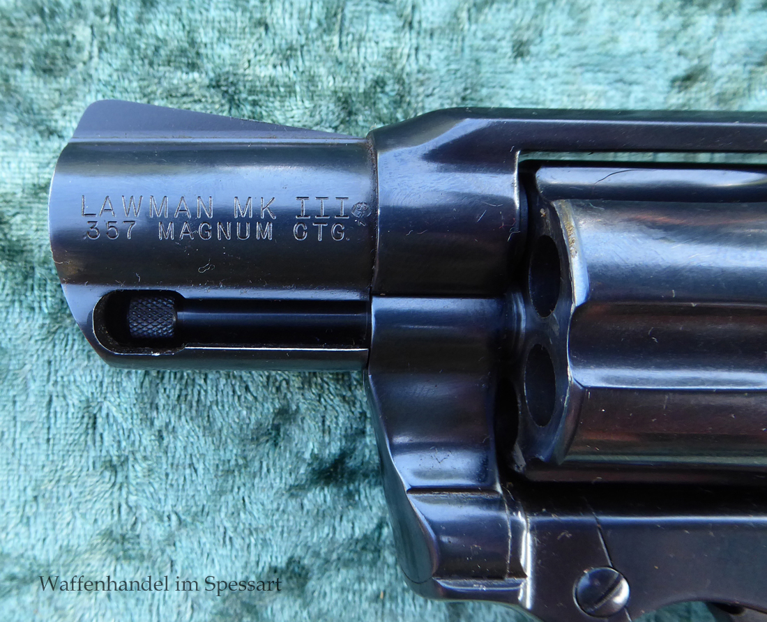 Kal..357Mag. Ser.Nr. 008640. Scharfkantiges blankes Laufinnere. Sehr gute bläuliche Brünierung. Lauflänge 2". Sehr gutes Timing. Geringe Schußbelastung.