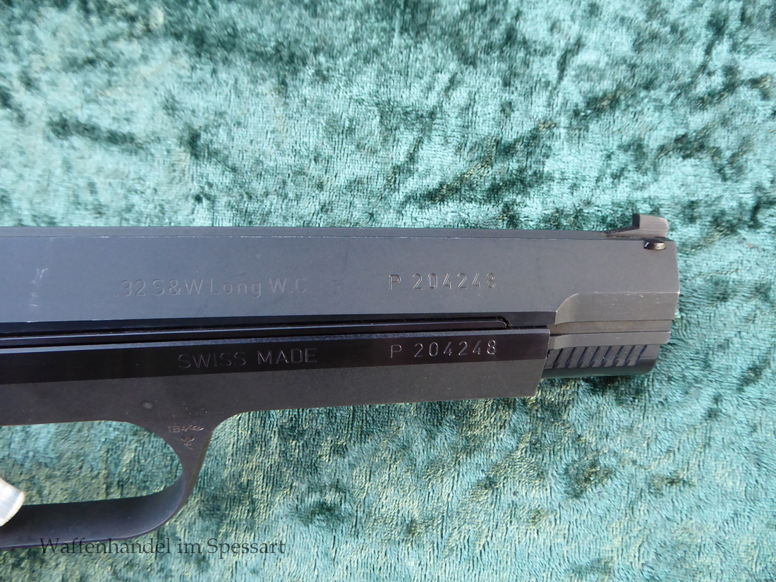 Kal..32S&WLongWC. Ser.Nr. P204248. Beschuß von 1981. Scharfkantiges blankes Laufinnere. Sehr gute Brünierung mit geringen Gebrauchsspuren.