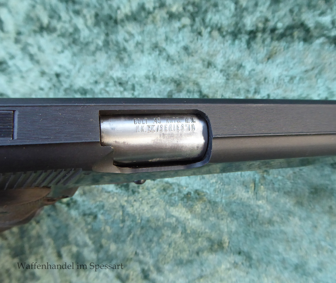 Kal..45Auto. Ser. Nr. 70N73512. Gültiger Beschuß von 1979. Scharfkantiges blankes Laufinnere. Sehr schöne noch bläuliche Originalbrünierung mitgeringen Gebrauchsspuren. Der Lauf verriegelt fest ohne Spiel. Sehr gutes Abzugsverhalten.
