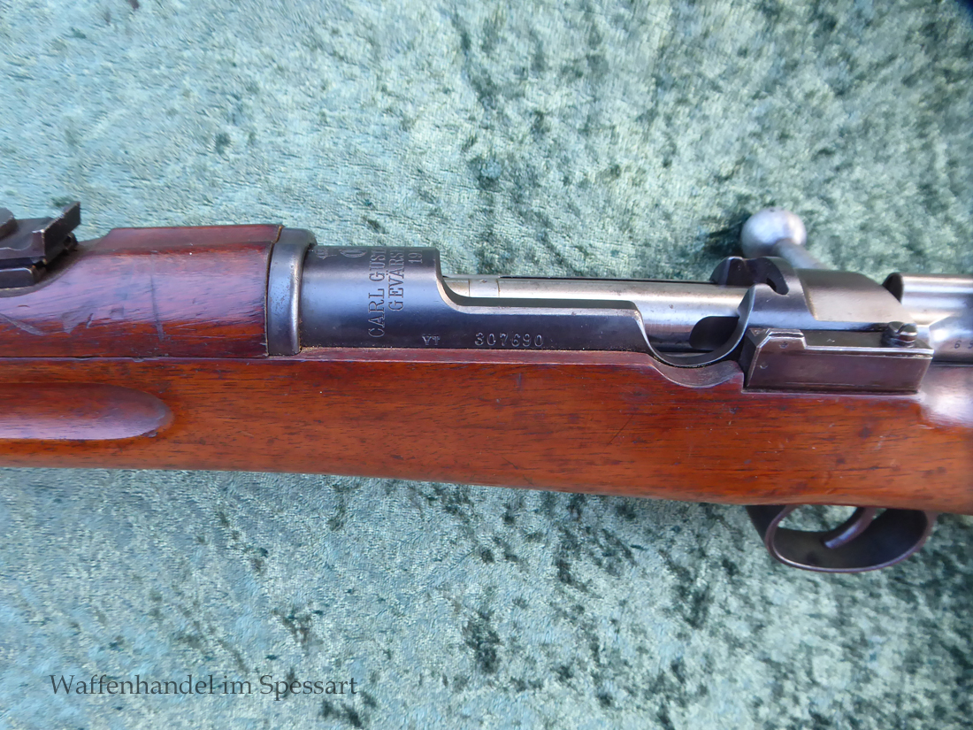 Hersteller Carl Gustafs Stads. Baujahr 1912. Kal.6,5x55Schwed. Ser.Nr. 307690. Nummerngleich. Scharfkantiges fast blankes Laufinnere. Orginale Brünierung. Deutliche tiefe Abnahmen im Schaft (keine der Arsenalüberholten Gewehre). Mit orig. darangwesenem Tunheden Feinvieiser.