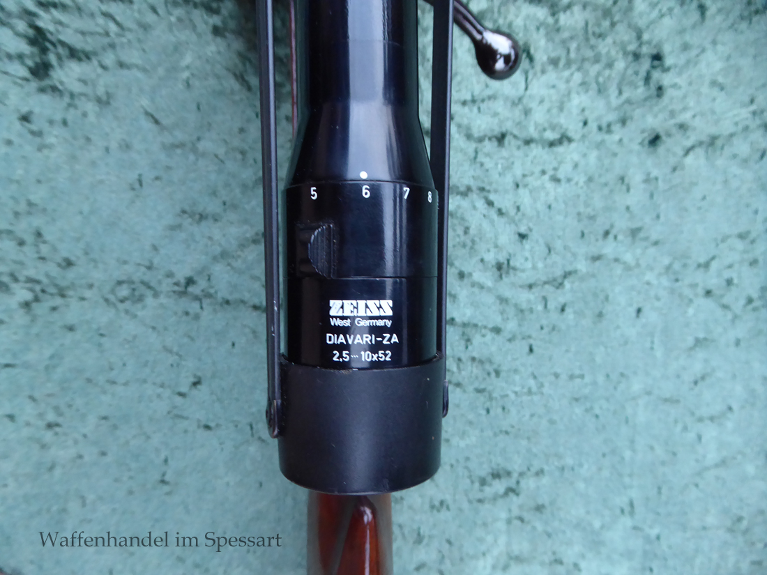 Das Zielfernrohr ist ein Zeis Diavari ZA 2,5-10x52 mit Absehen 11, das ich persönlich genialt finde. Dieses ist auf einer EAW Schwenkmontage verbaut.