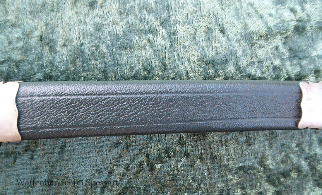 Gesamtlänge mit Scheide 49,5cm. Hirschfängerlänge 47cm, Klingenlänge 32,5cm, Klingenbreite 26mm. Mit orig. dazu gehörigem braunen Koppelschuh.