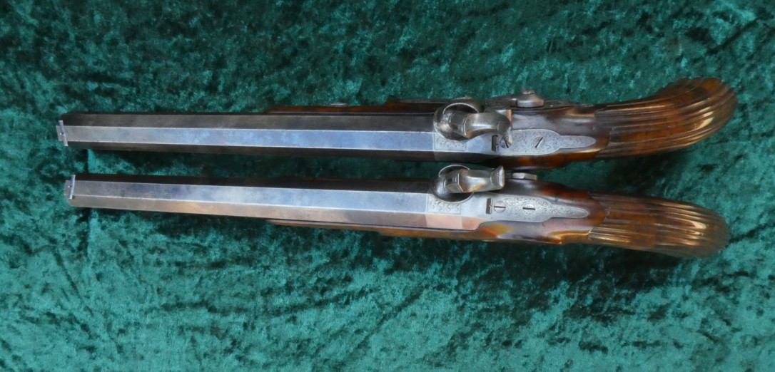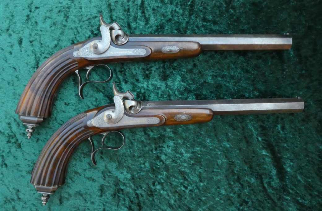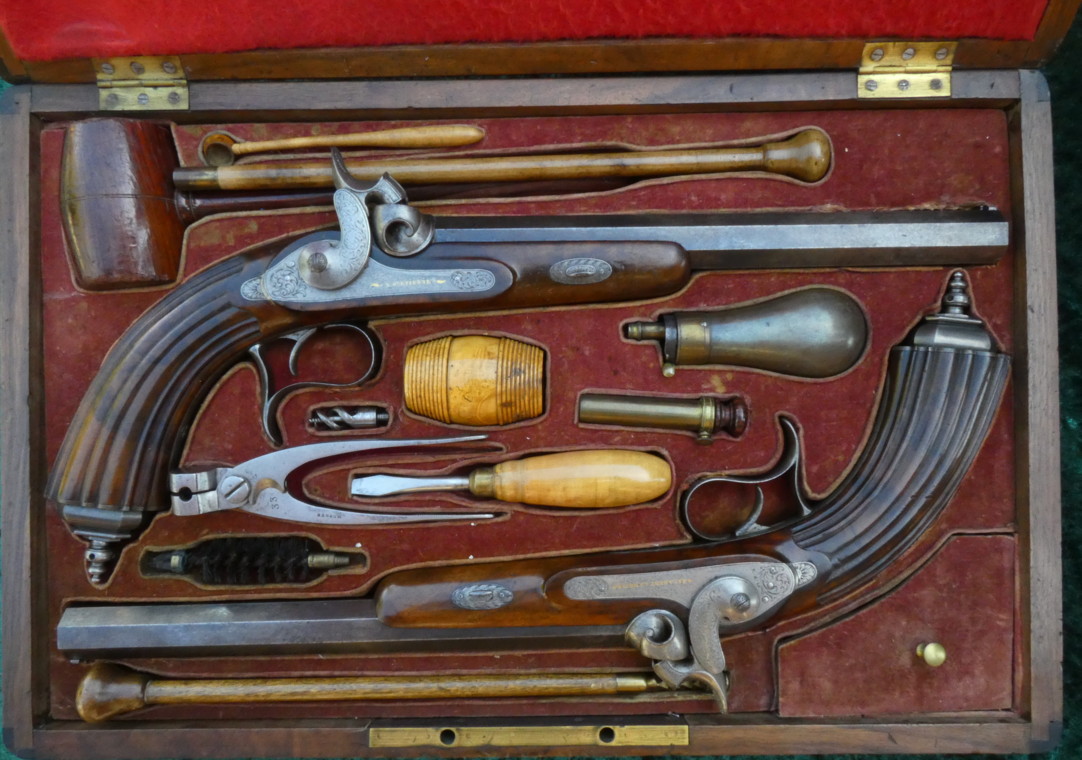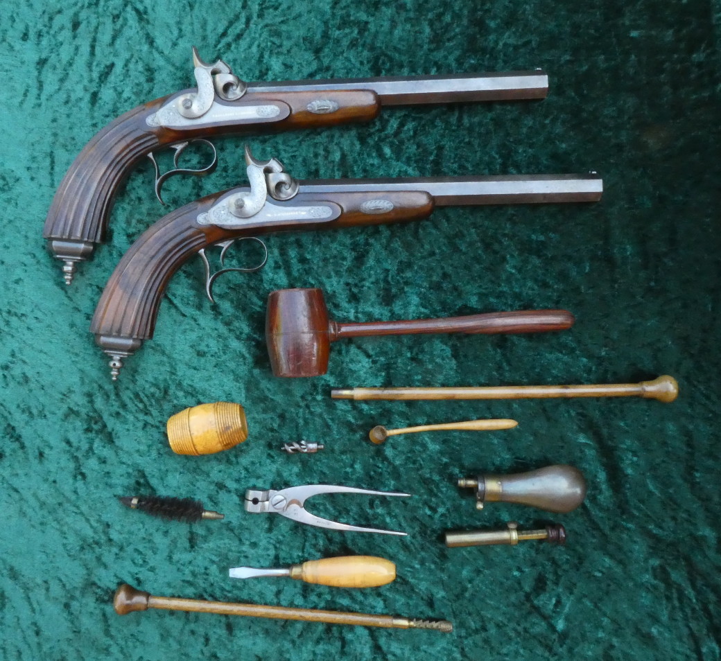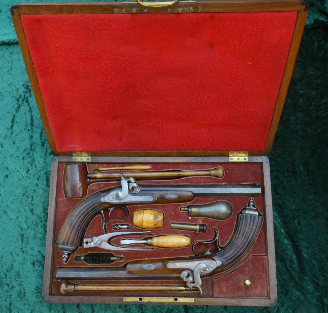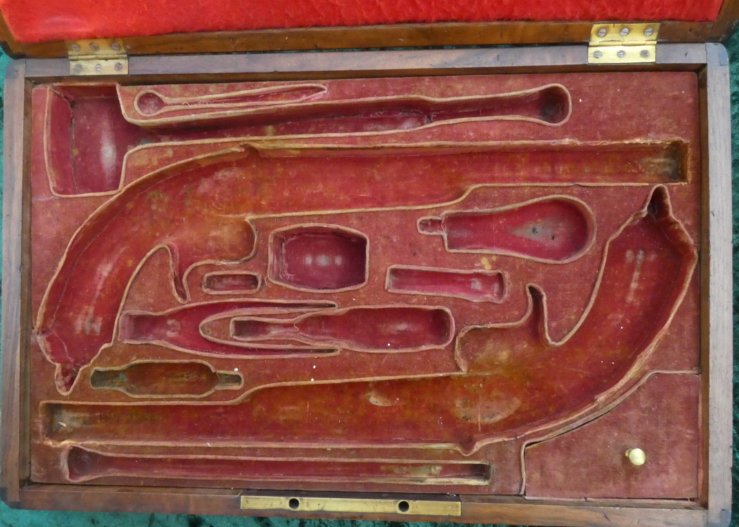 Ein Paar Perkussionspistolen im Kasten,