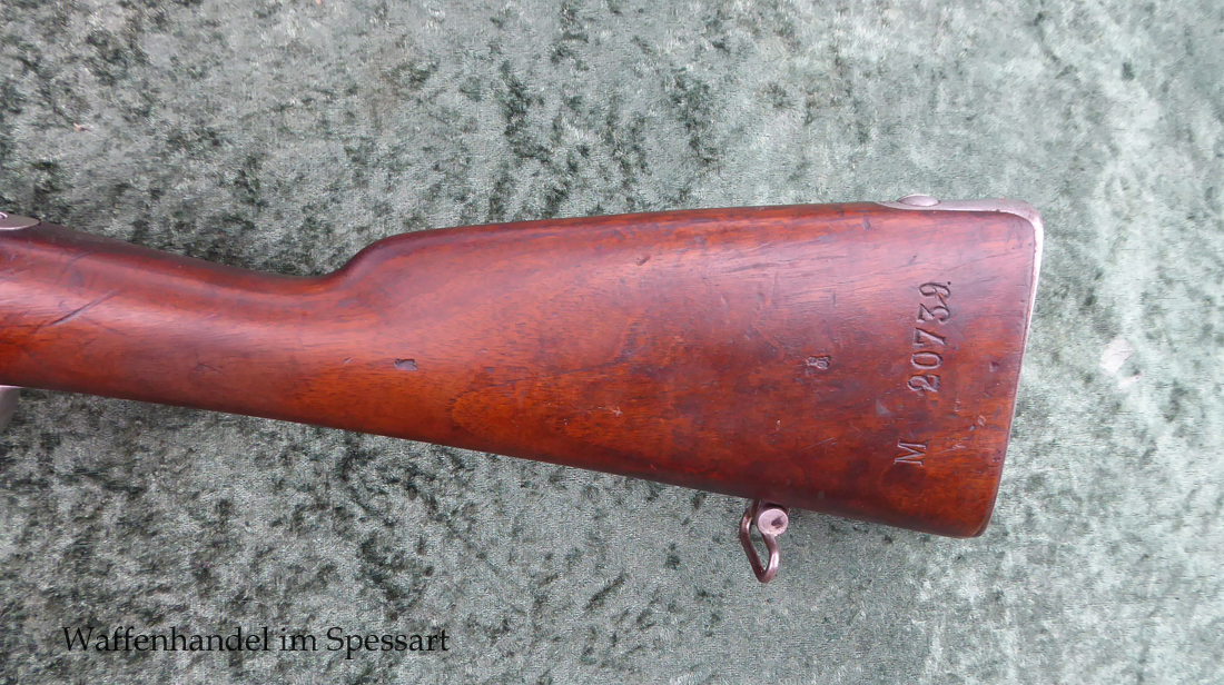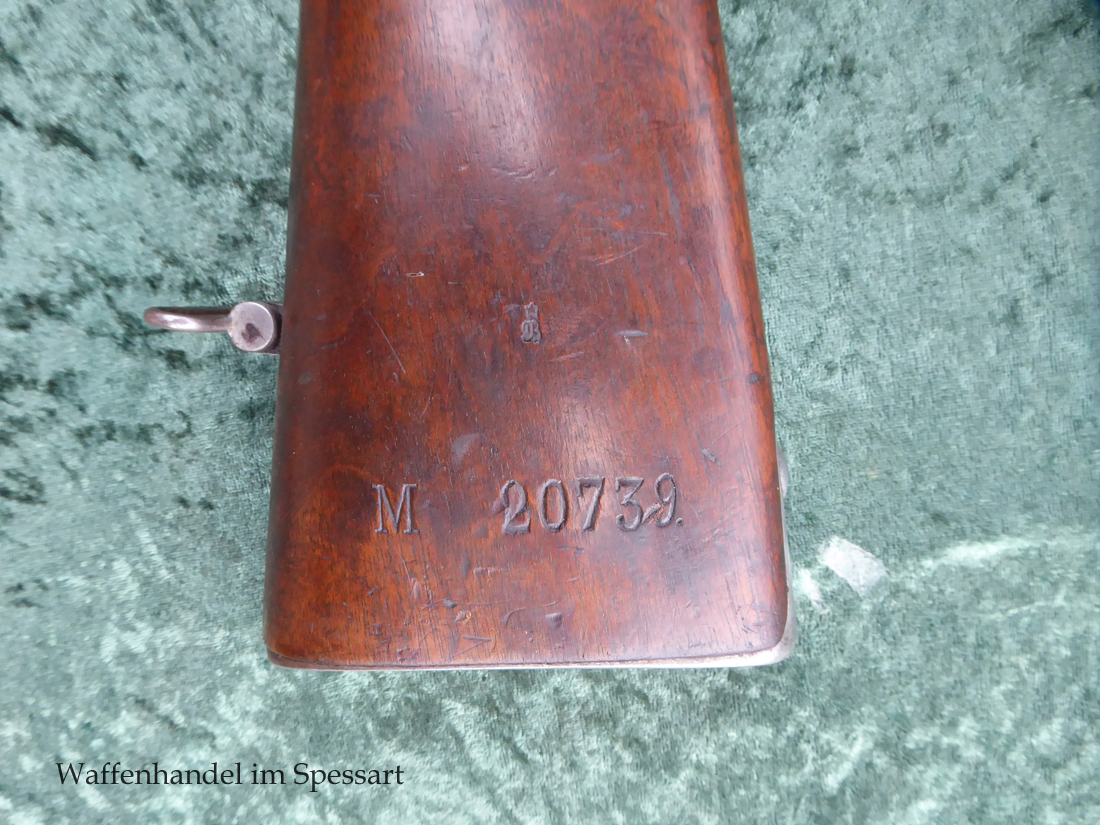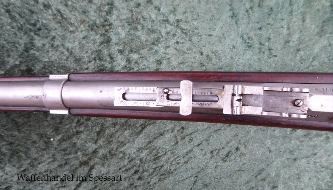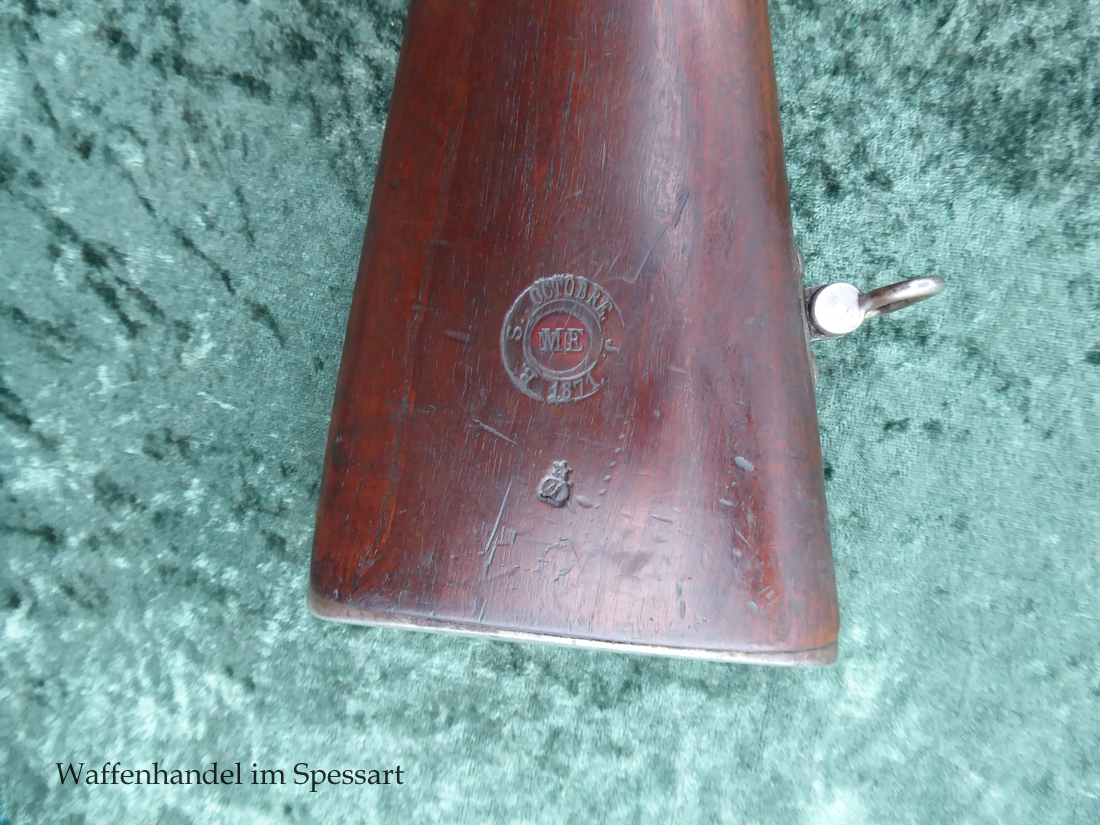 Hergestellt in St. Etienne 1871. Kal.11mm Chassepot Zündnadelpatrone. Baujahr 1871. Ser.Nr. M20739. Nummerngleich. Sogar der Entladestock hat die gleiche Nummer!. Das Laufinnere hat scharfkantige Felder und Züge und ist blank. Alle Stempel im Metall sind tief und deutlich. Der schöne Schaft mit sehr gut erhaltenen tiefen Abnahmen! Die Dichtung ist original. Die Nadel original. Mit dem langen Visier, das vornehmlich an Jägereinheiten ausgegeben wurde. Gut funktionierendes Schloß mit strammer Feder. Voll funktionsfähiges Gewehr. Keine verdrehten oder beschädigten Schrauben. Das Gewehr befindet sich in orig. Pflegezustand.