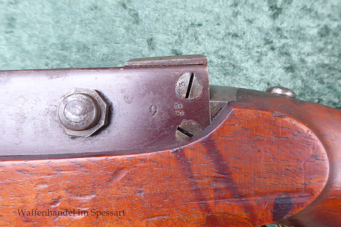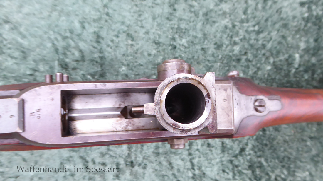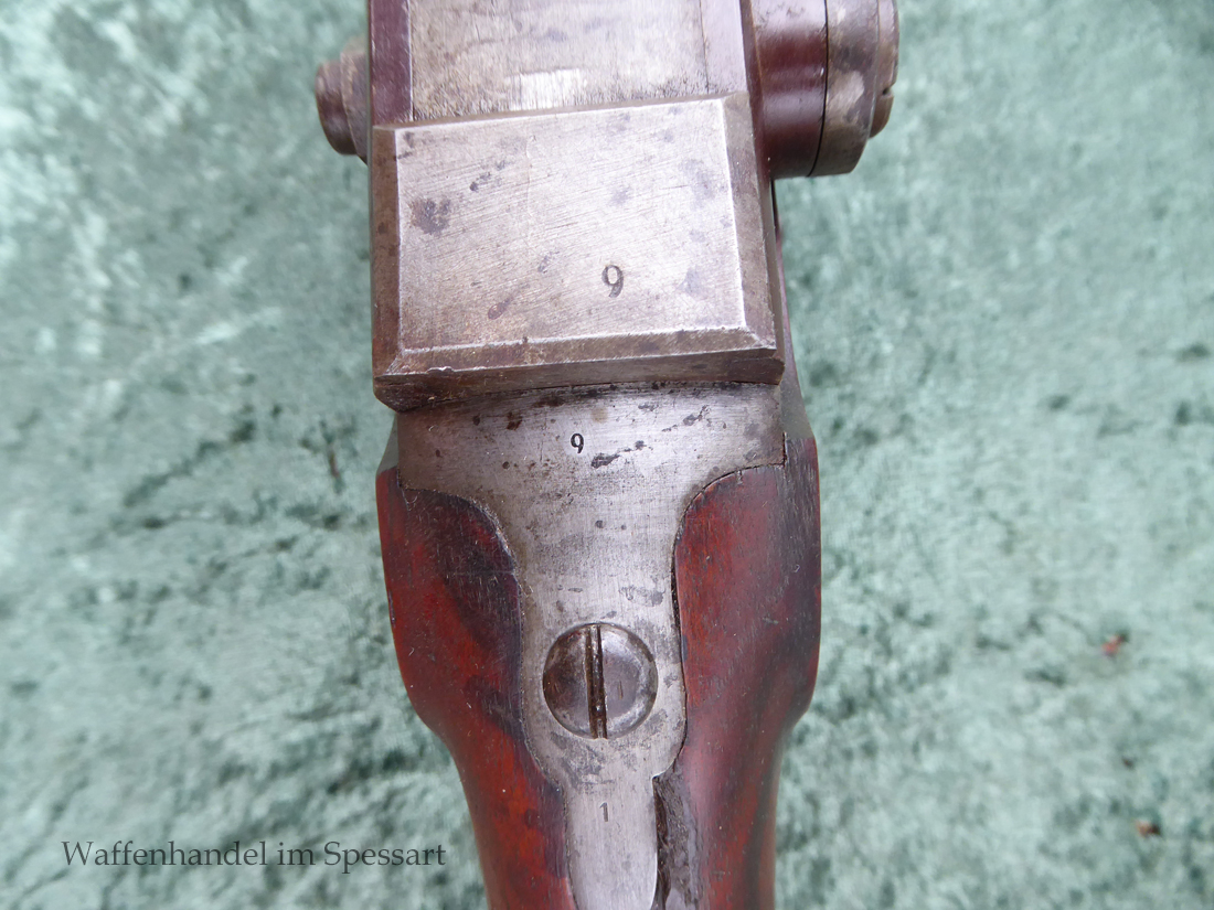 Bei diesem Gewehr wurden die Schrauben zum Schraubenloch durchnummeriert. Diese haben der Reihe nach verschiedene Nummern, die auch auf dem Metall sind wo diese ihren Platz haben sollen. So ist eine Verwechselung untereinander ausgeschlossen. Alle Hauptteile haben die Nummer 9.