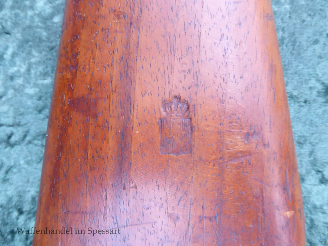 Kal.18mm. Hersteller Crause aus Herzberg. Ser.Nr. 9! Nummerngleich. Echter Damastlauf! Das Laufinnere hat scharfkantige Felder und Züge. Er ist bis auf kleine Anhaftungen im Mündungsberch blank! Der Lauf und des Systemgehäuse ist original bräuniert. Die Oberfläche hat stellenweise leichte Fleckchen und leichte Anhaftungen. Durch sorgfältiges Reinigen gut zu verbessern. Der helle Schaft hat rechts am Kolben einen Stempel mit dem norwgischem Wappen.