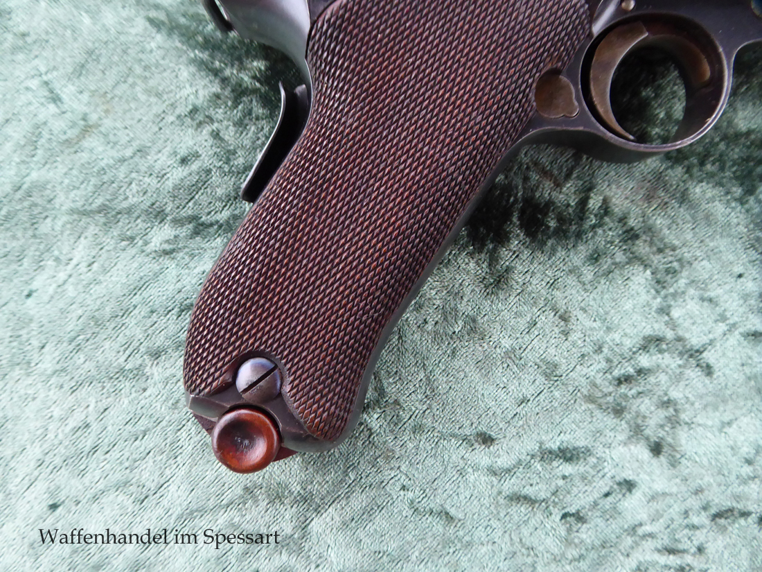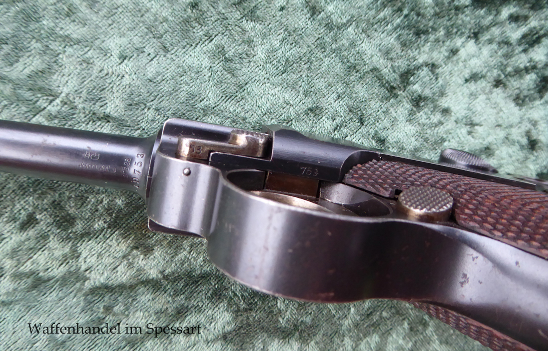 Hersteller DWM. Kal.7,65mmLuger. Ser.Nr. 19753. Nummerngleich. Scharfkantiges blankes Laufinnere. Gute originale Brünierung. Gute Mechanik. Originales dazugehöriges Magazin.