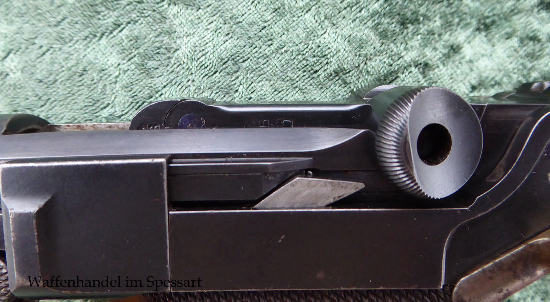 Bei dieser P00 ist der Kammerfang, der Sicherungshebel, der Schlagbolzen und das Magazin nicht nummeriert!