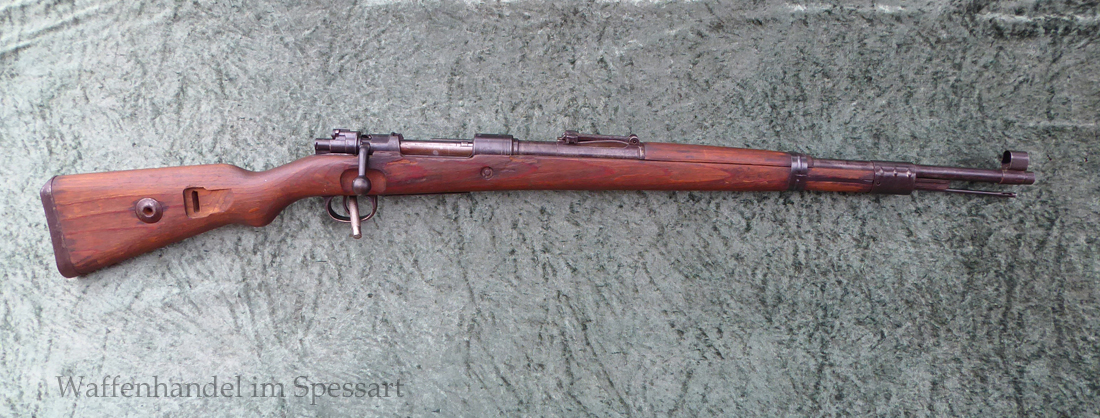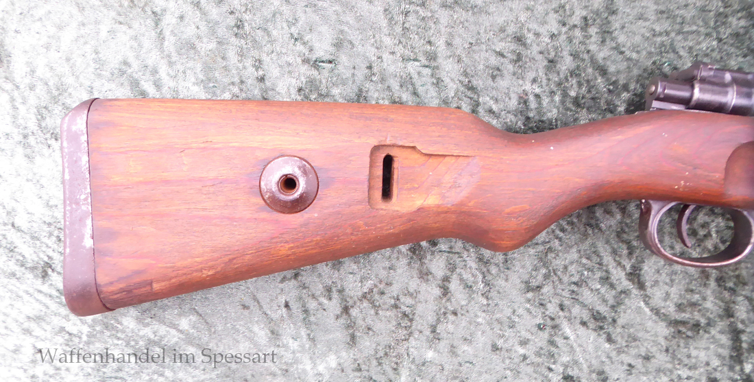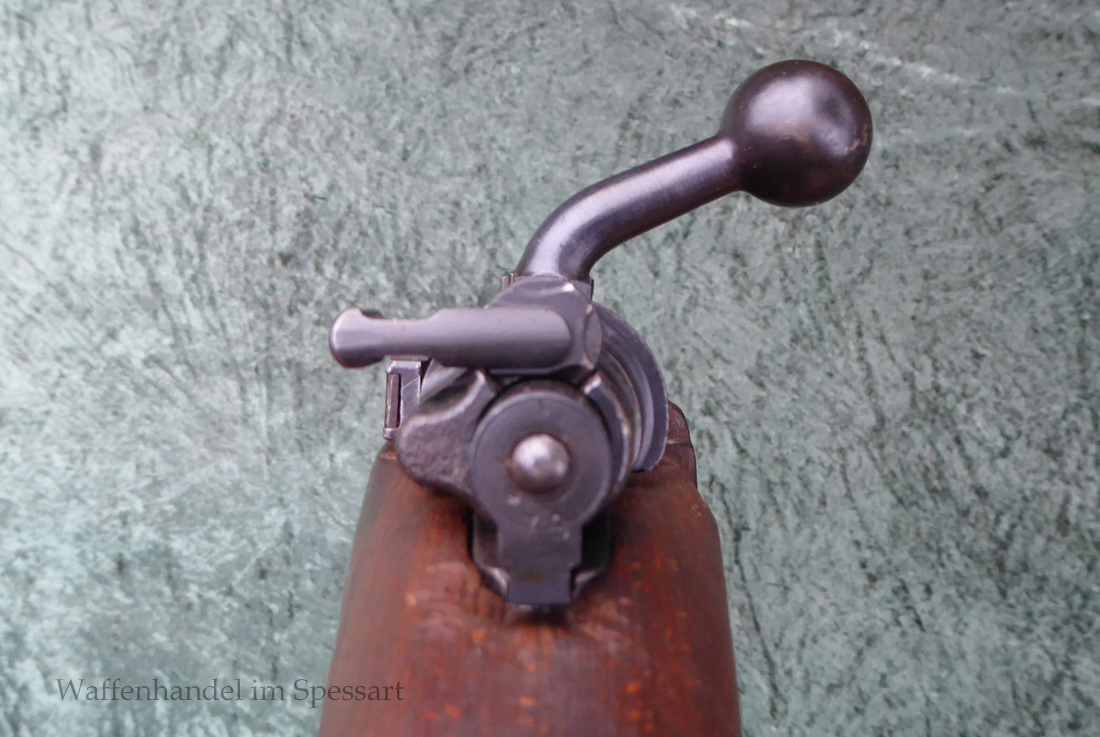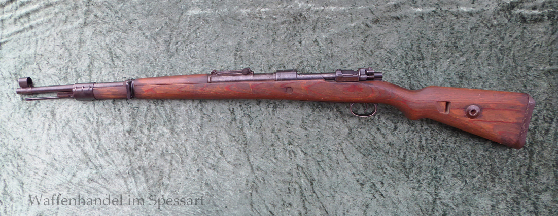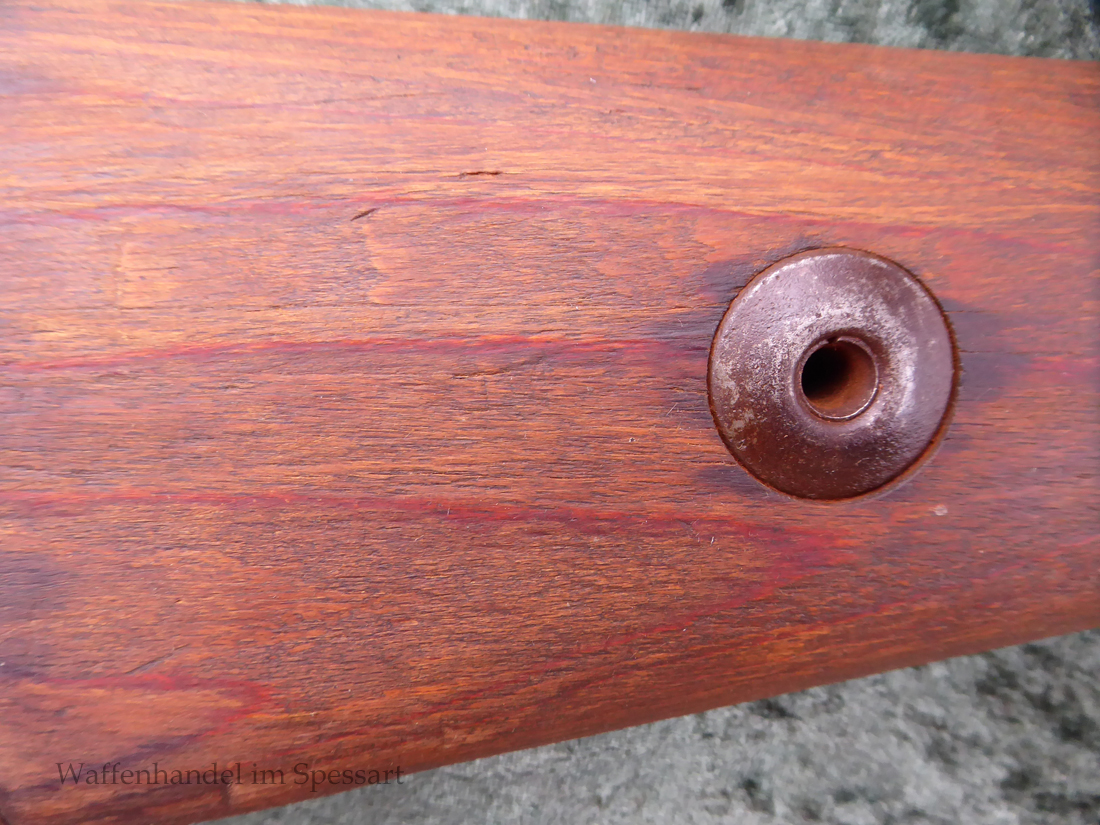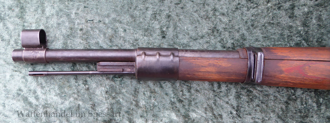 Kal.8x57is. Ser.Nr. 21079a. Nummerngleich. Das Laufinnere hat sehr gute scharfkantige Felder und Züge und ist fast blank (geringe Anhaftungen im Mündungsbereich). Gute orig. Brünierung mit geringen Alterspuren! Guter Schichtholzschaft, der innen nummeriert ist.