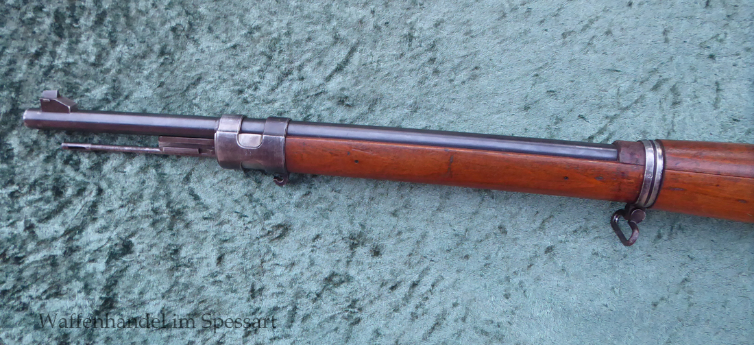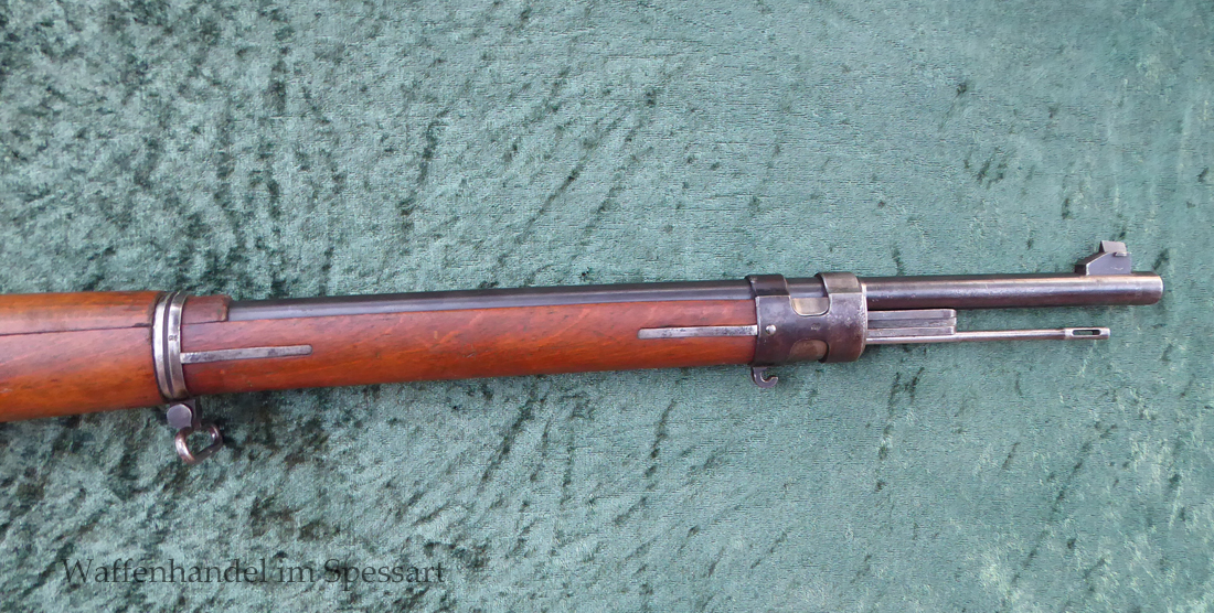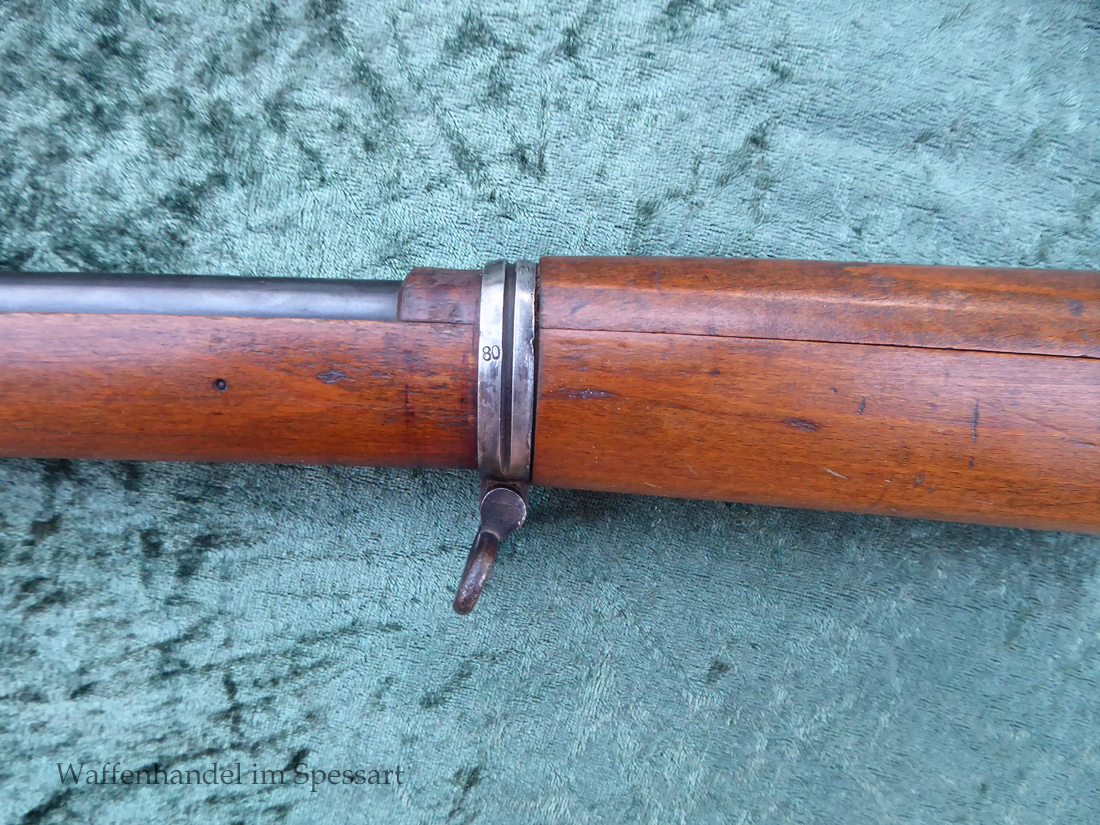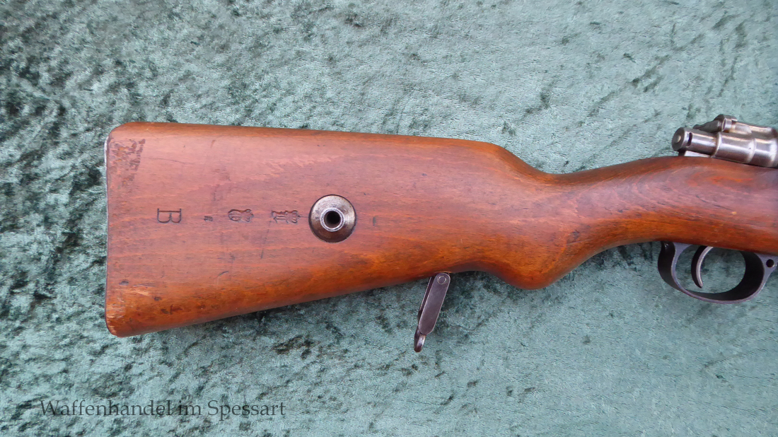 Hersteller Gewehrfabrik Amberg im Jahr 1917. Kal.8x57is, Ser.Nr.2680f. Nummerngleich inkl. Reinigungsstab. Das Laufinnere hat scharfkantige Felder und Züge. Es ist blank! Die originale Brünierung ist sehr gut erhalten. Das blanke Hülsensystem und der verschluß hat eine hauch von Patina, kein Rost! Schöner heller Schaft mit geringen Gebrauchsspuren. Die Abnahmestempel im Schaft sind tief und sehr gut erhalten. EWB Schaftstempel für Einwohnerwehr Bayern.