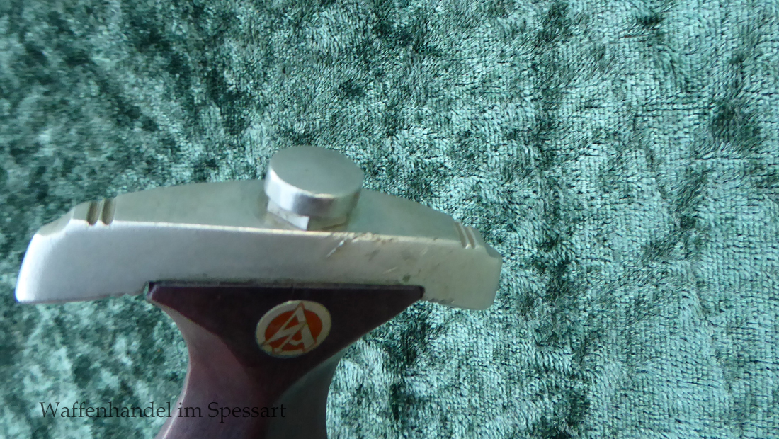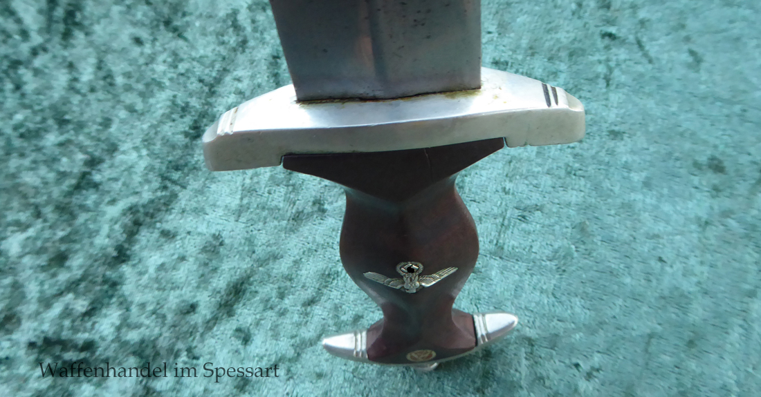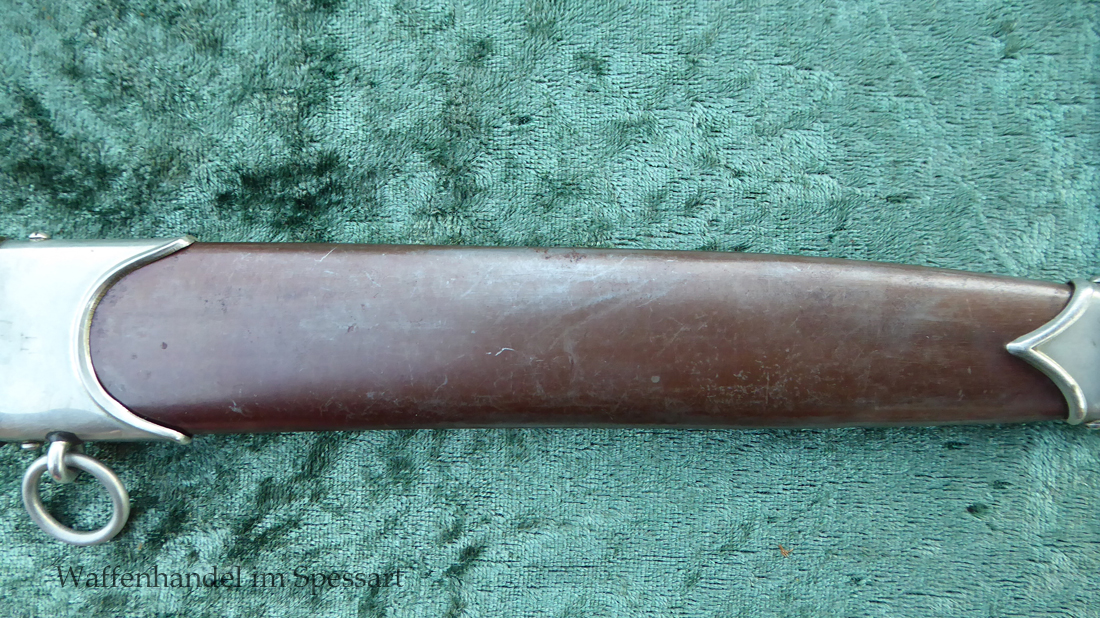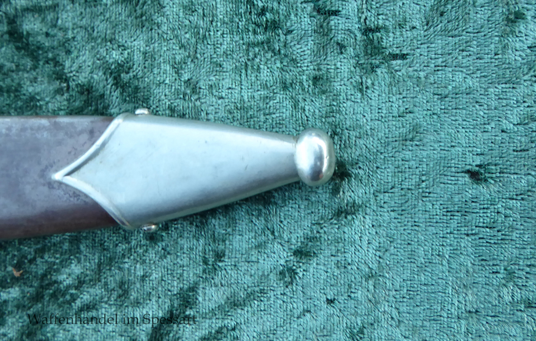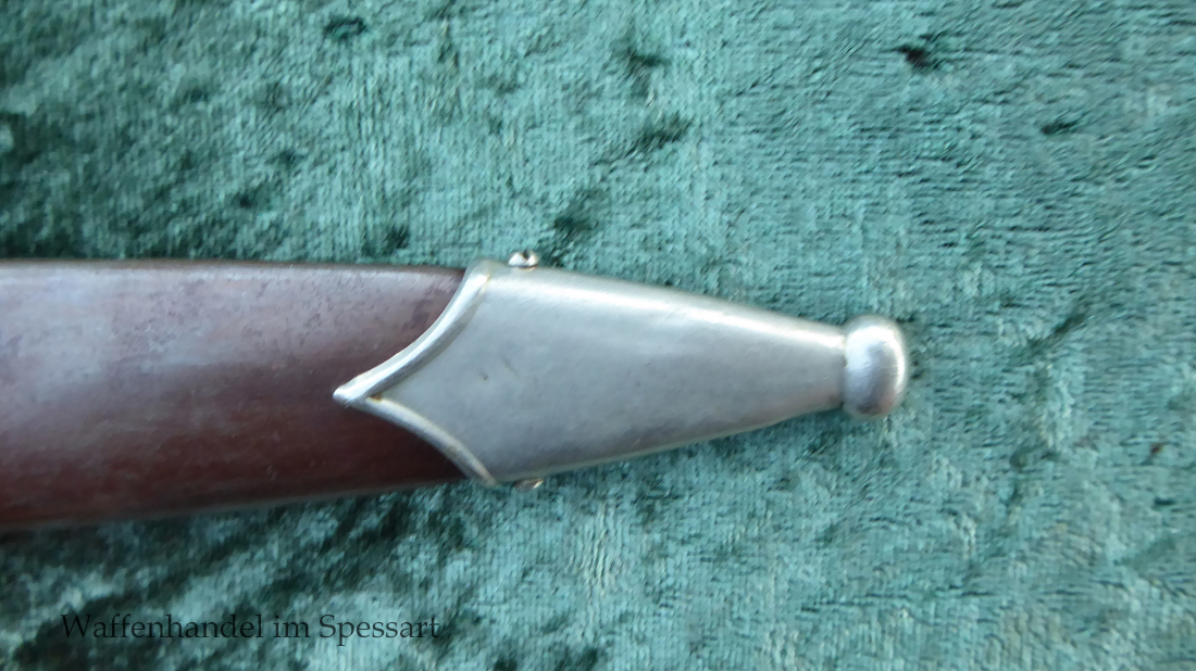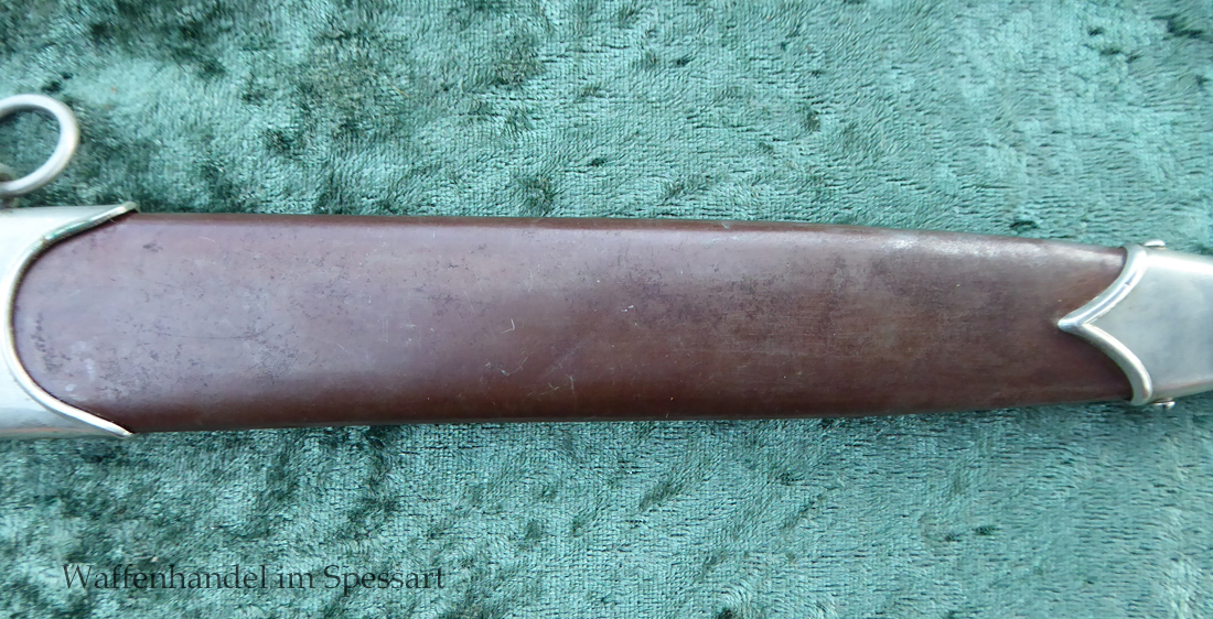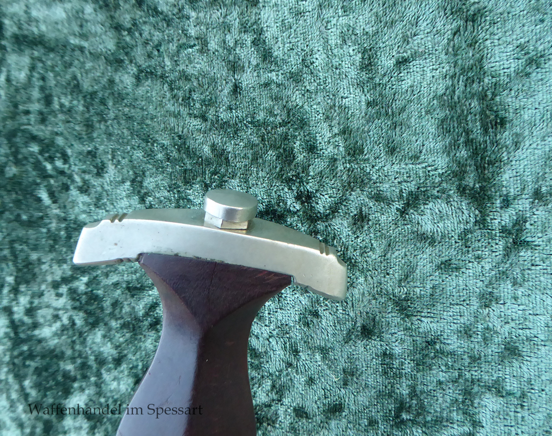 Hersteller F. Dick. Gaustempel SW für Gau Südwest auf der Parierstange geschlagen. Die Griff- und Scheidenbeschläge sind aus Neusilber. Der Adler ist in Neusilberausführung. Die orig. Bräunierung auf der Scheide ist sehr gut erhalten und zum größten Teil noch mit dem orig. Schutzlack überzogen. Die Klinge ist geätzter Devise Alles für Deutschland. Sehr gut erhaltene Klinge mit Spuren von Heraus- und Hineinschieben. Sehr gut erhaltener ungereinigter Doch der in allen Teilen original zusammengehörig.