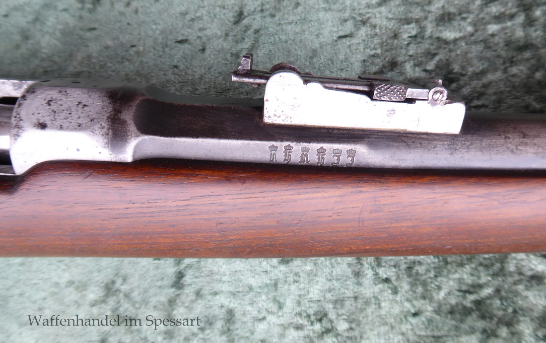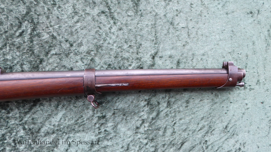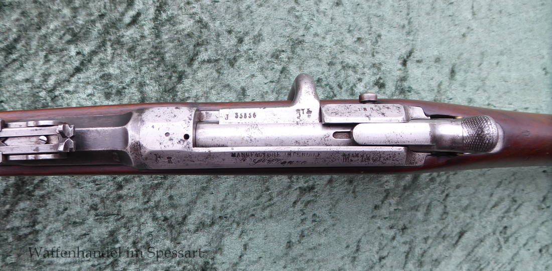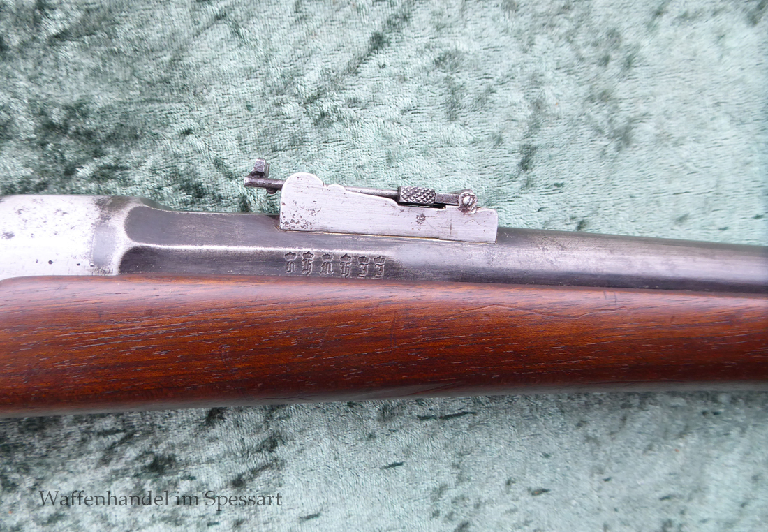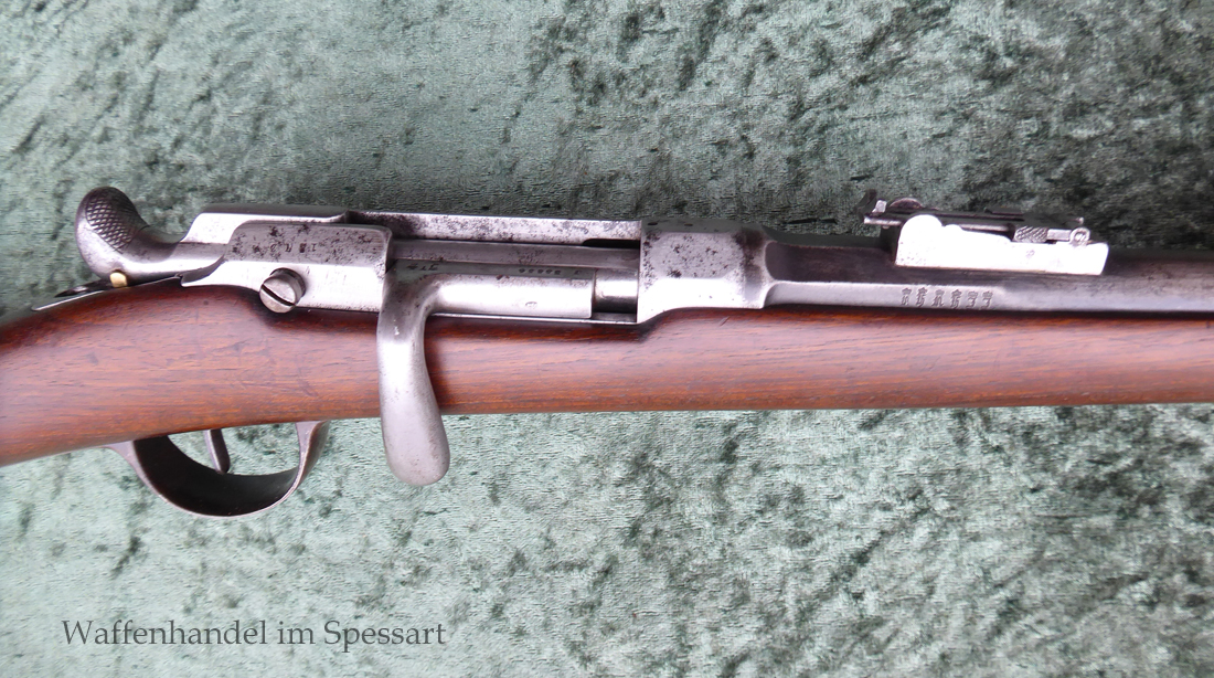 Da das deutsche Kaiserreich den erst später produzierten Karabiner 71 noch nicht zur Verfügung hatte, wurden Chassepotkarabiner auf Patrone 71 geändert. Ändeungen am Verschluß, System, Korn mit Schutzbacken etc. Natürlich mit den preußischen Abnahmestepel versehen!