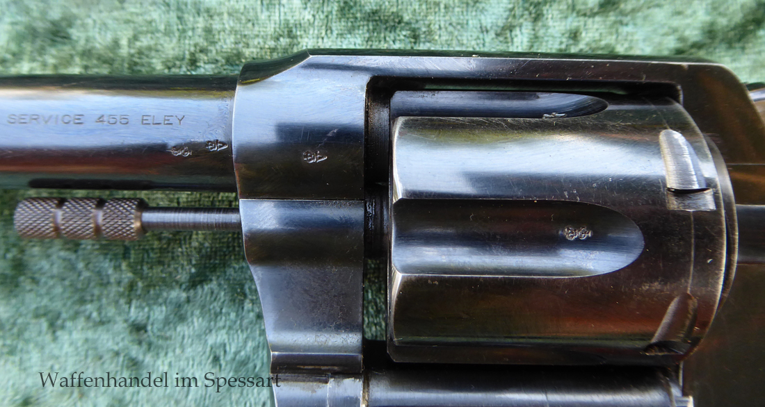 Kal..455 Elay Ser.Nr. 70897 von 1914. Scharfkantiges blankes Laufinnere. Sehr gute originale bläuliche Brünierung. Sehr gutes Timing.