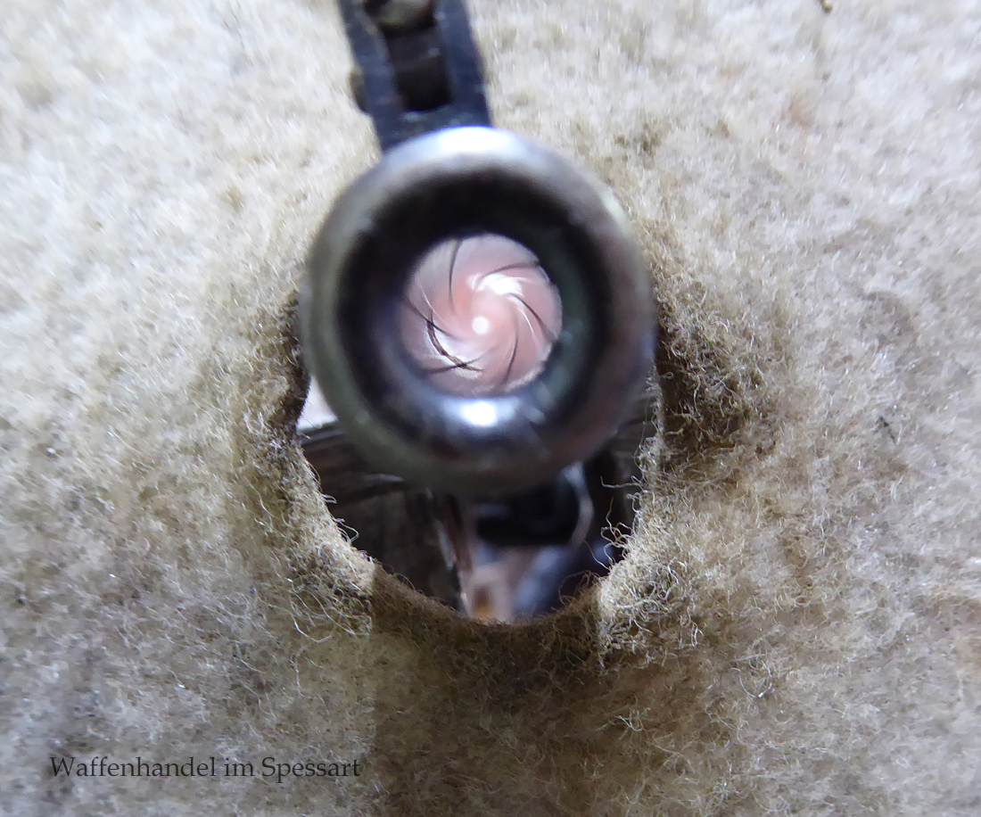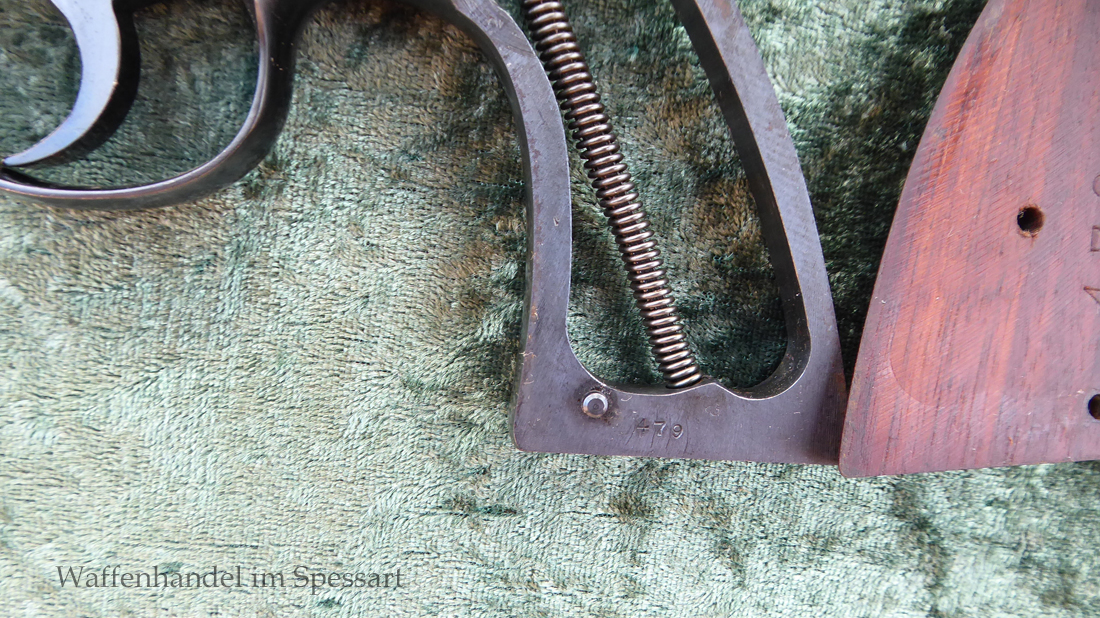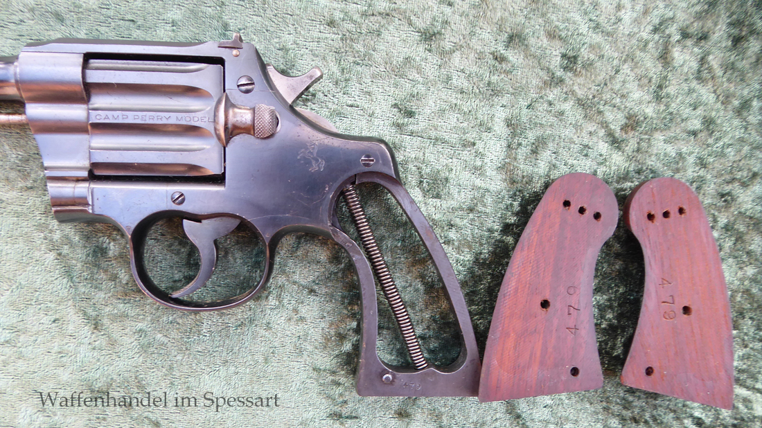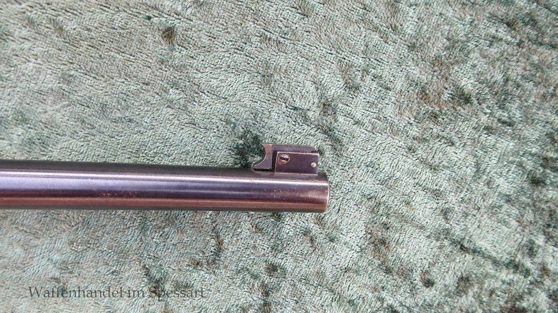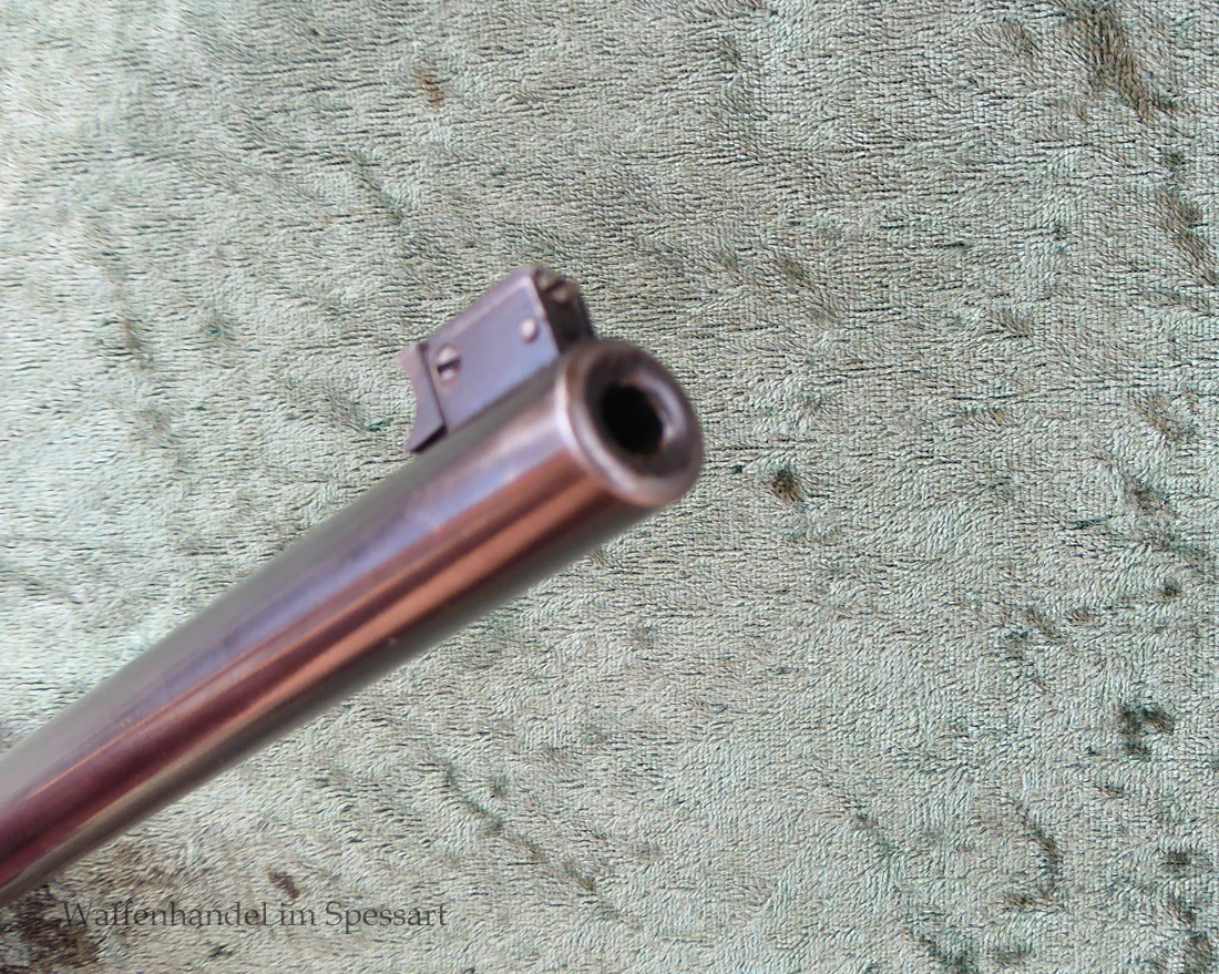 Kal..22lr. Ser.Nr. 479. Scharfkantiger fast blankes Laufinnere. Lauflänge 8" = 210mm. Sehr gute bläuliche orig. Brünierung. Bei der Firmierung auf der Laufoberseite Patente bis 1926. Baujahr 1927. Verstellbares Korn.