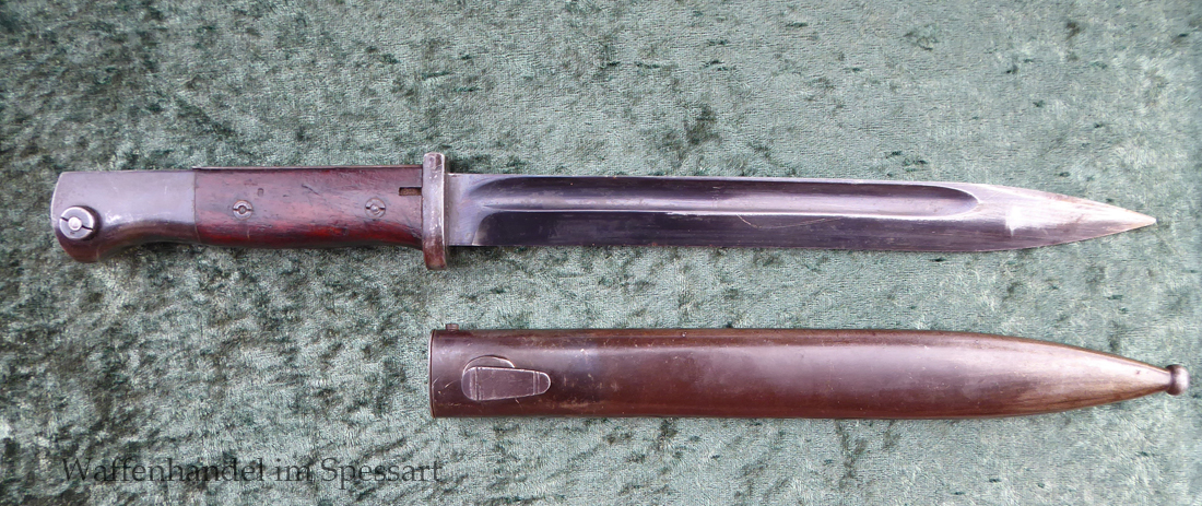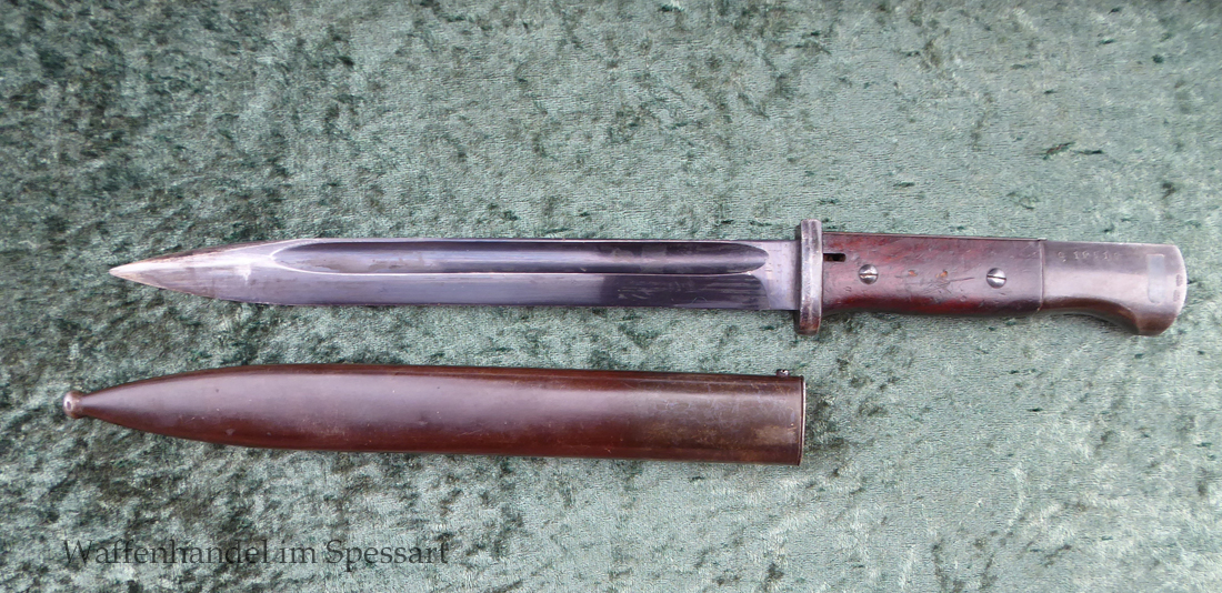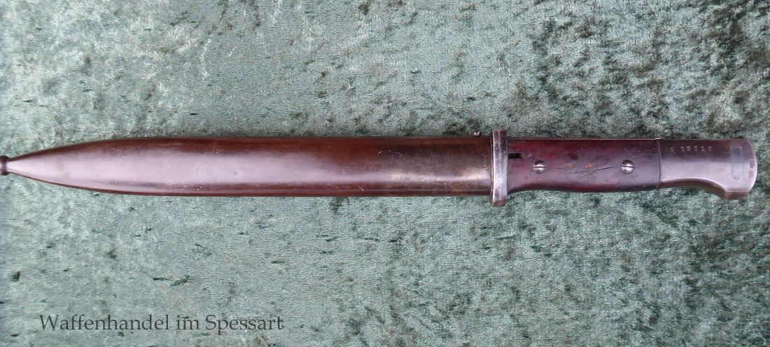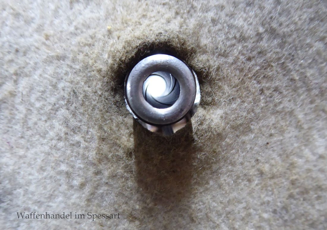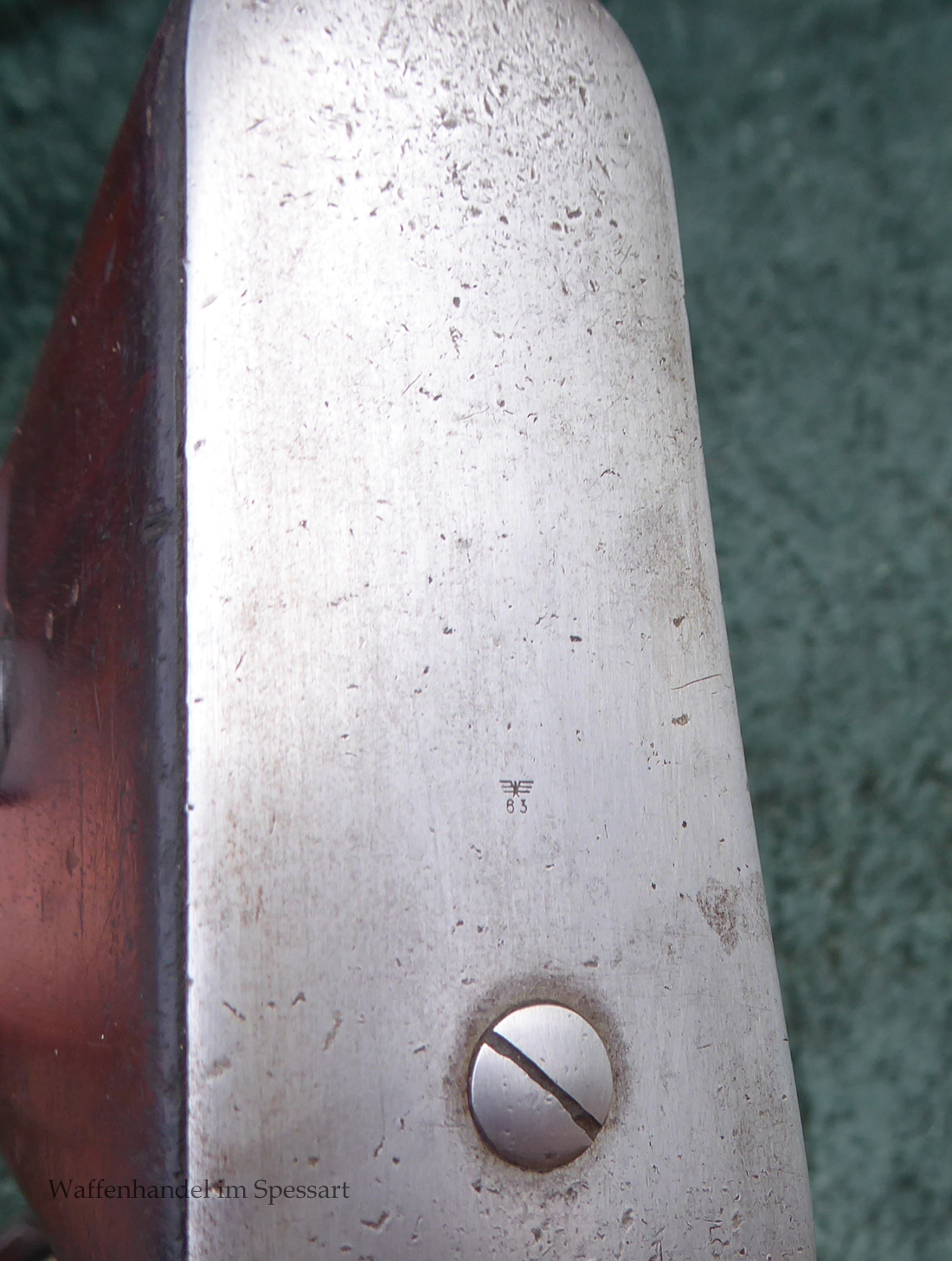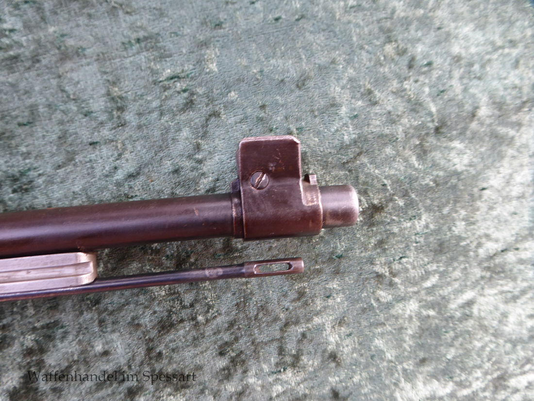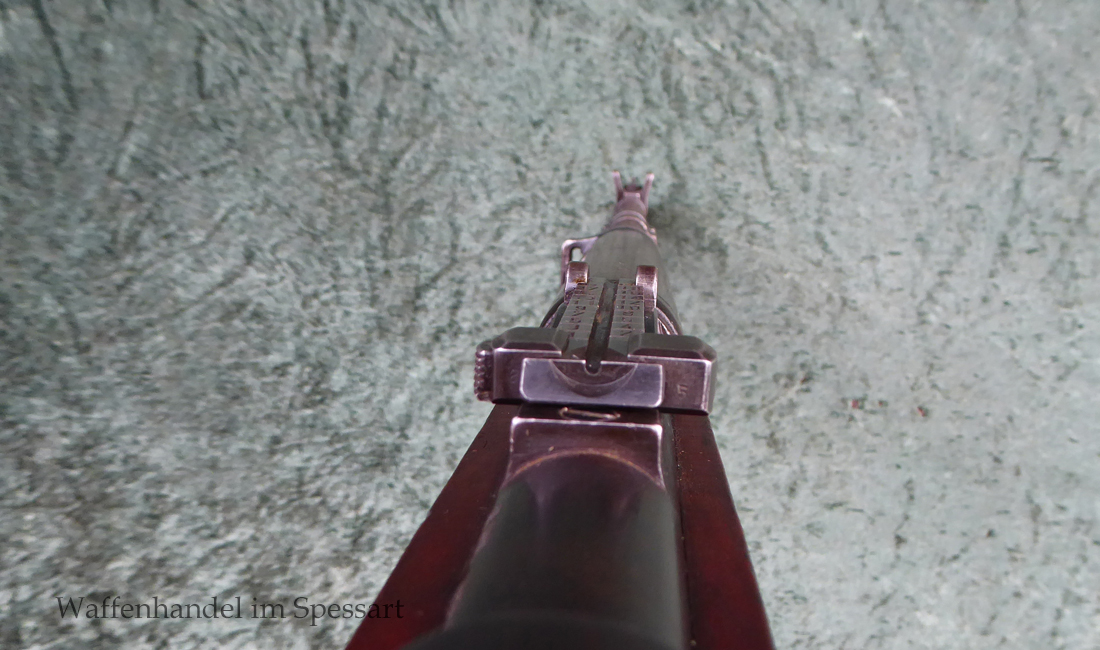 Hersteller Mauser Oberndorf. Kal.8x57is. Ser.Nr. C18515. Nummerngleich. Mit nummerngleichem Bajonett. Das Laufinnere hat scharfkantige Felder und Züge und ist blank. Gute und schöne originale Brünierung mit Spuren des Gebrauches. Der Nußbaum Schaft mit geringen Gebrauchspuren und allen tief erhaltenen Abnahmen. Durch die frühe Fertigung für Portugal bedingt haben alle Teile die Abnahme Waa 63. Diese Serie hat original ein Balkenkorn und eine Kimme mit U Ausschnitt für besseres Zielen!