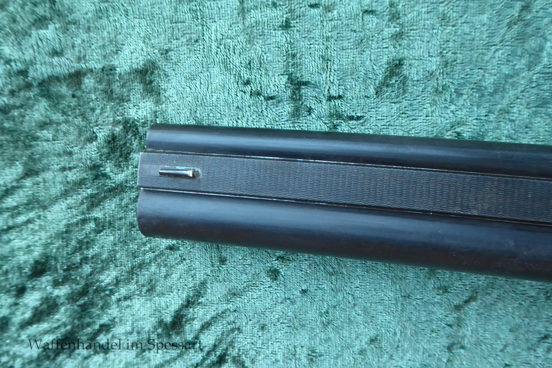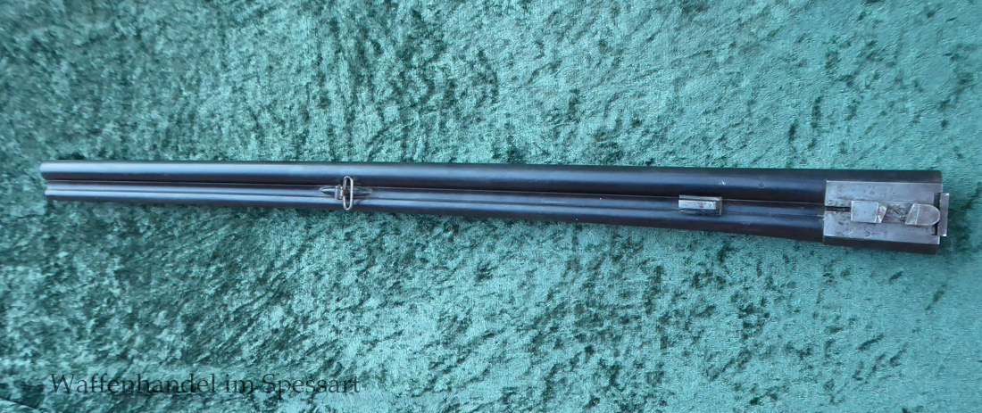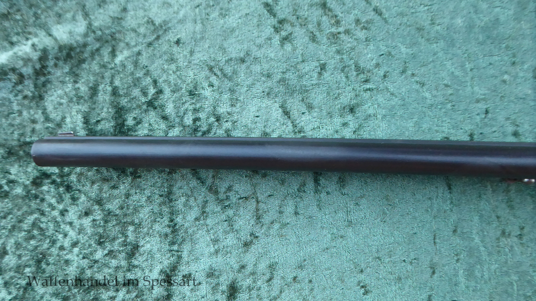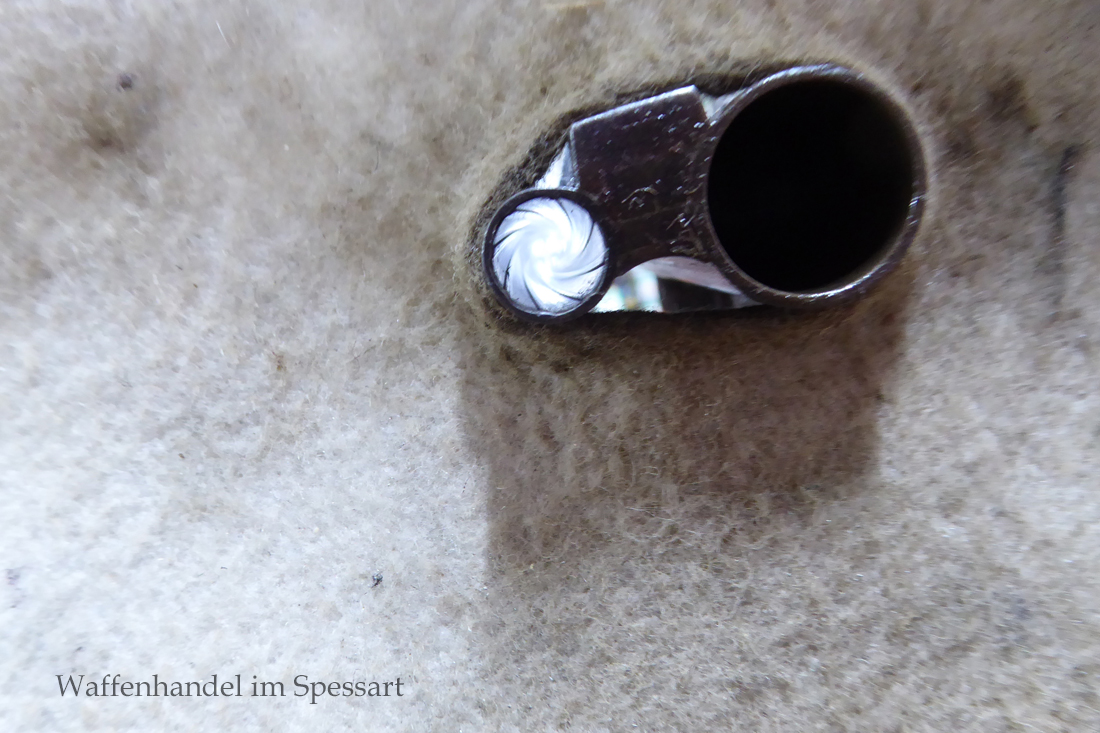 Das Laufinnere des Schrotlaufes ist leicht matt. Der Kugellauf hat scharfkantige Felder und Züge. Er ist blank. Das System ist fest und dicht. Das Laufbündel ist original streichbrüniert und das System hat Reste von Bunthärtung.Die Hahnschlosse haben Sicherheitsrückspringschlosse die tadellos rasten. Origenale Hornkappe.